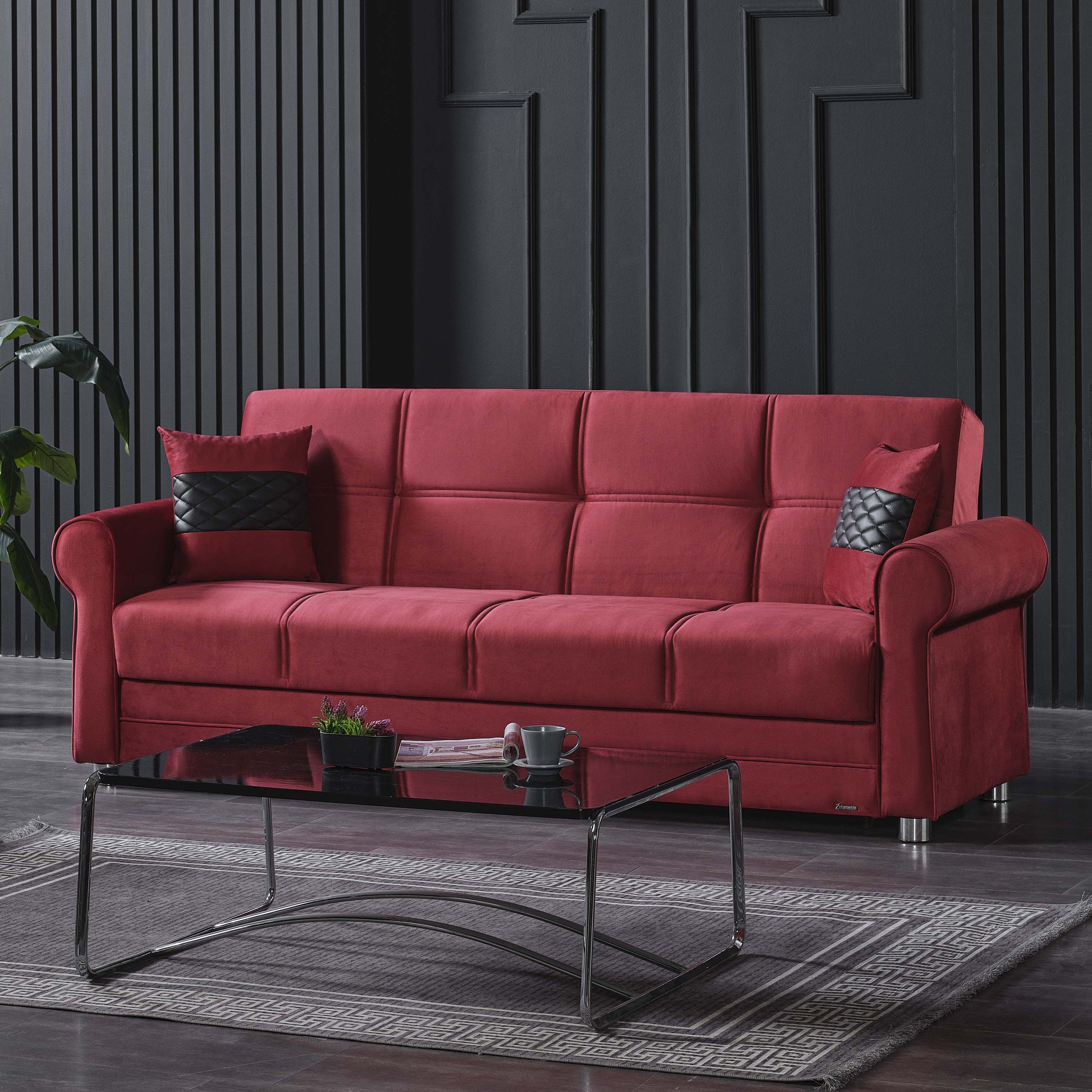 - FASHIONABLY CONVENIENT: With one swift motion, transform this sofabed into a sleeper that measures in at 74.4'' x 44.1'' or utilize the included storage compartments for your very own storage needs. ASSEMBLY made easy in 30 minutes or less! DISCLAIMER: ITEMS IN IMAGES SOLD SEPARATELY