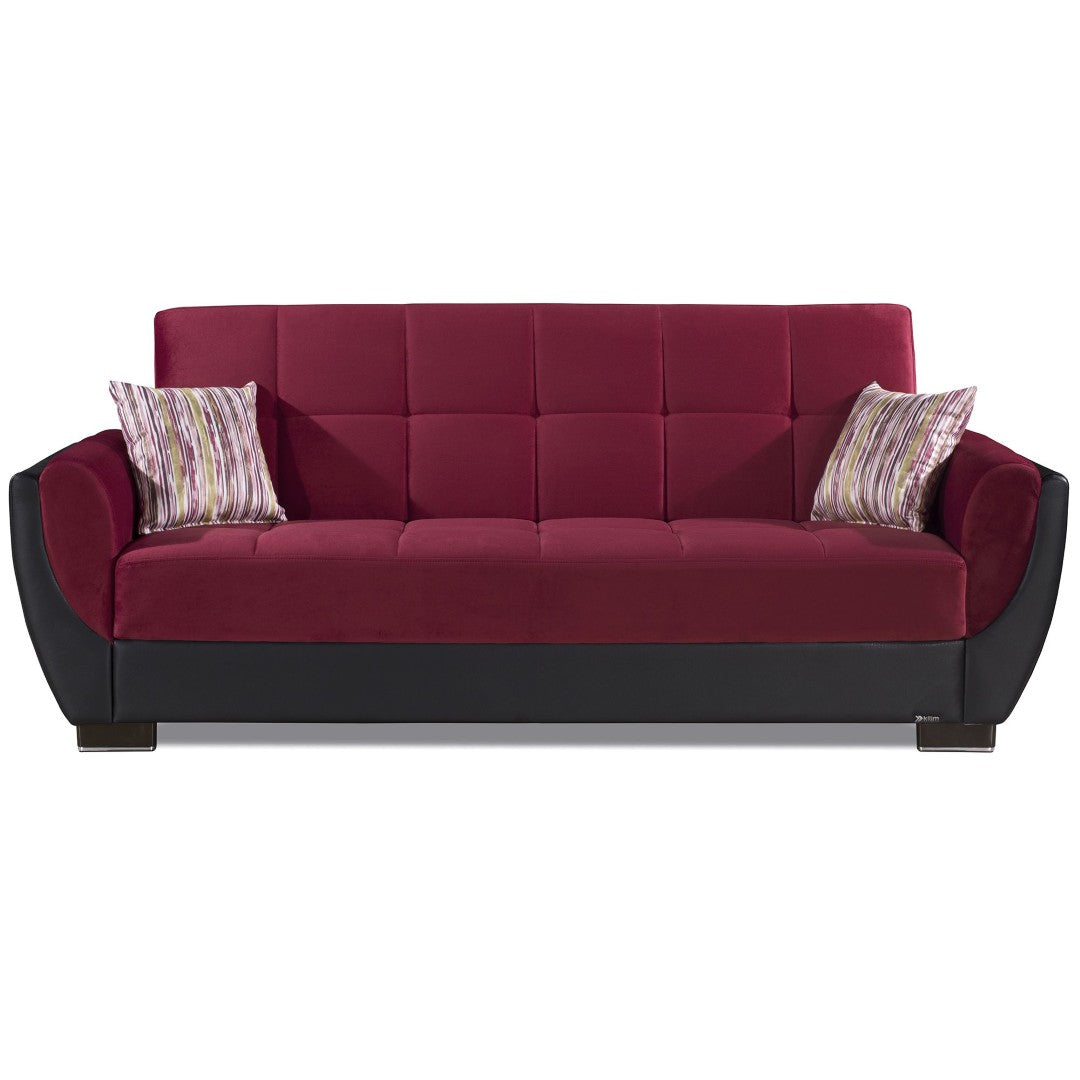 - QUALITY CRAFTED: Quality crafted in Turkey with only the finest materials. This sofabed is available in a variety of material options, including full Chenille, full Leatherette, or combinations such as Chenille/Leather, Chenille/PU, Microfiber/Leather, and Microfiber/PU. Accompanied by four sturdy legs that help the Sofabed hold a WEIGHT CAPACITY OF 900 LBS.