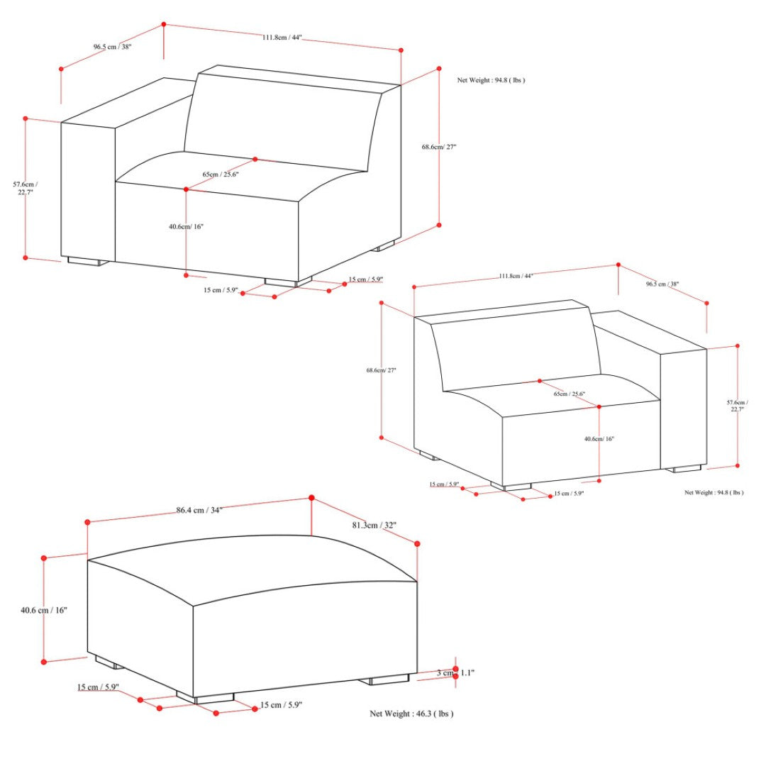 - Assembly: Fast, tool-free setup — connectors on the sofa modules click together; ottoman requires no assembly.