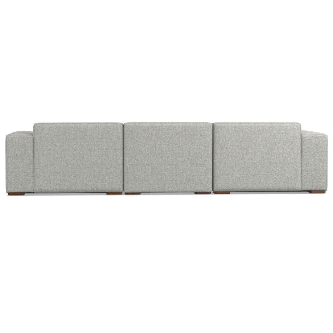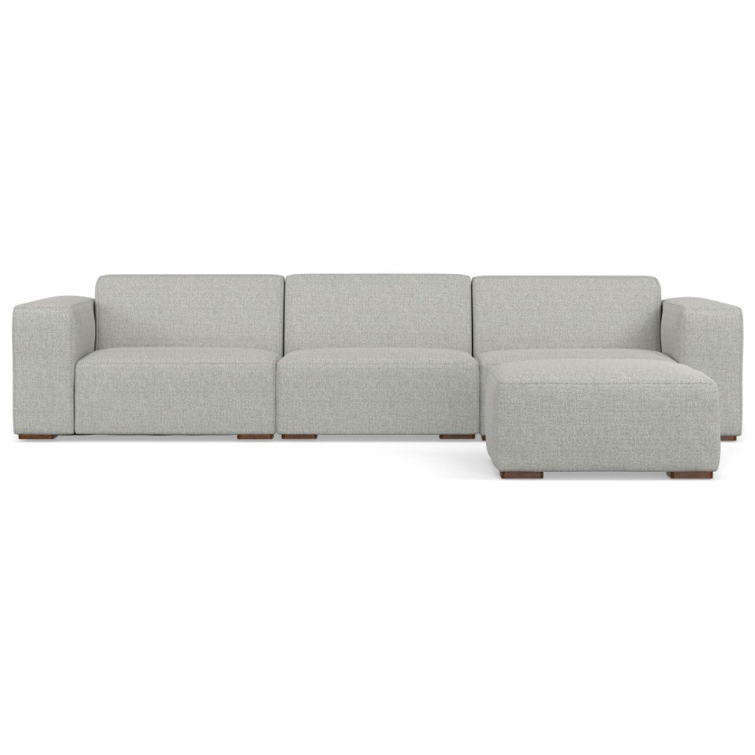 - Handcrafted, modern-style 2-piece set for living room includes the Rex 3-Seater Modular Sofa (38" D x 122" W x 27" H; supports up to 900 lbs) and matching ottoman (32" D x 34" W x 16" H; supports up to 300 lbs).