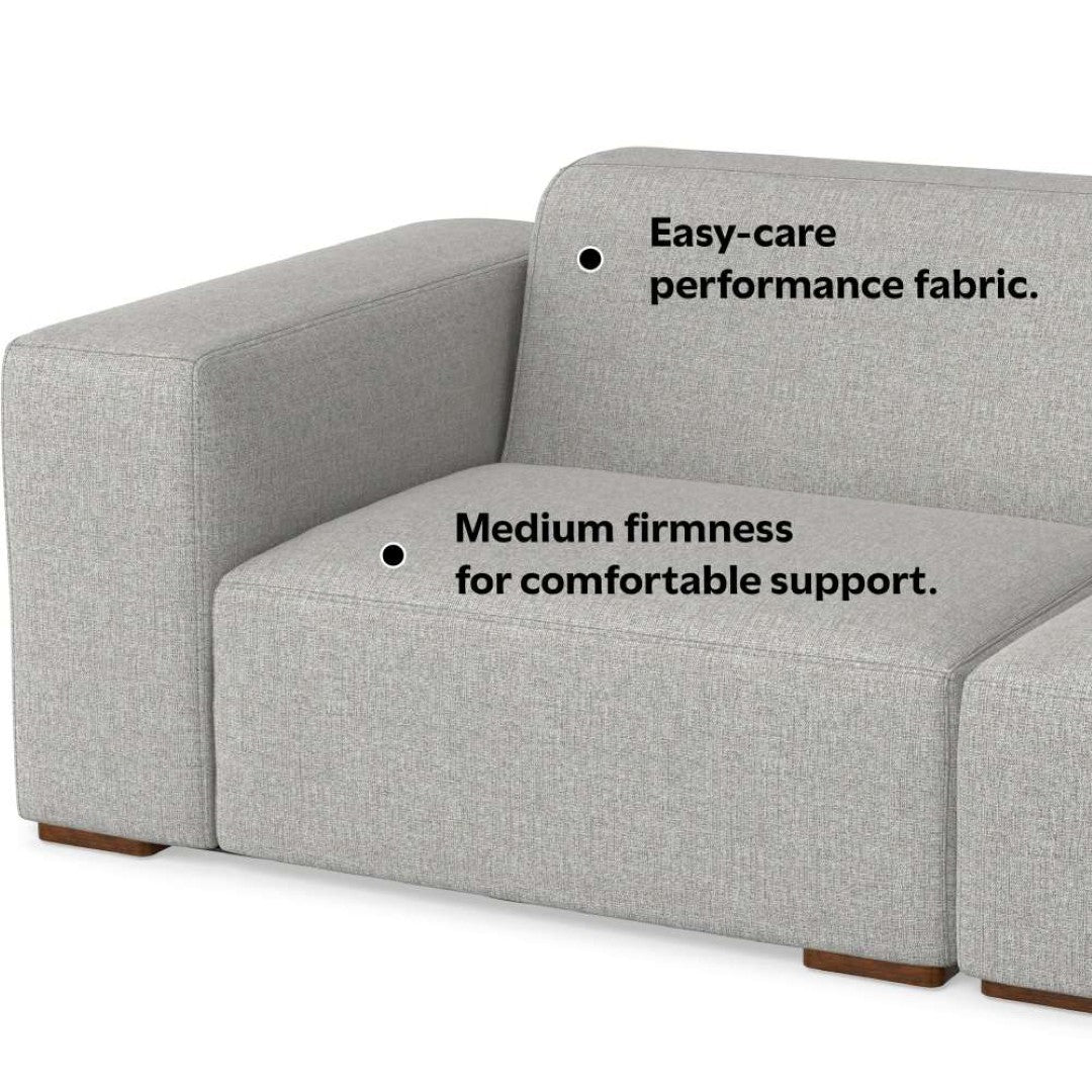 - Upholstered in Pale Grey Performance Fabric, a soft yet durable, easy-care fabric made with 100% recycled polyester and protected with water-repellent and fire-resistant coatings; this eco-friendly fabric meets the Global Recycled Standard and OEKO-TEX® STANDARD 100.