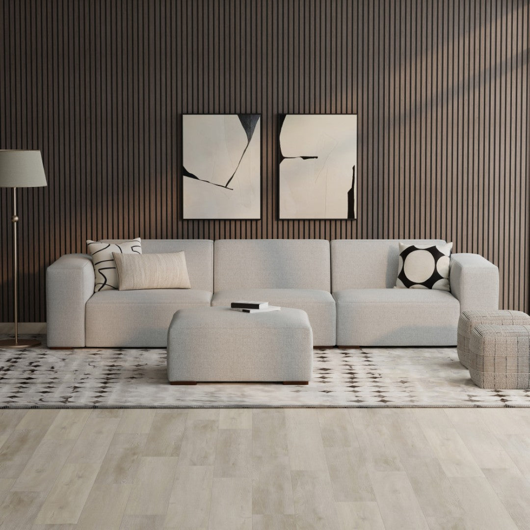 Refresh your living space with the Rex 3-Seater Sofa and Ottoman set — a handcrafted, modern two-piece ensemble designed for everyday comfort, eco-conscious style, and lasting performance. Upholstered in a pale gray performance fabric made from 100% recycled polyester, this set combines thoughtful construction, supportive cushioning, and easy maintenance to create an inviting centerpiece for your living room.