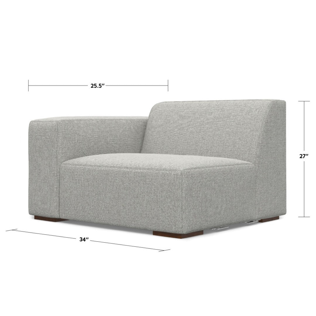 A versatile and modern left-arm sofa module designed for solo use as an asymmetrical accent chair or to form custom seating configurations within the handcrafted Rex Modular Sofa Collection. Clean, boxy lines with a gently sloping back deliver a contemporary look, while performance fabric, quality cushioning, and a reinforced frame ensure everyday comfort and long-lasting use. Ideal for living rooms, lounges, or flexible seating arrangements where style and functionality matter.