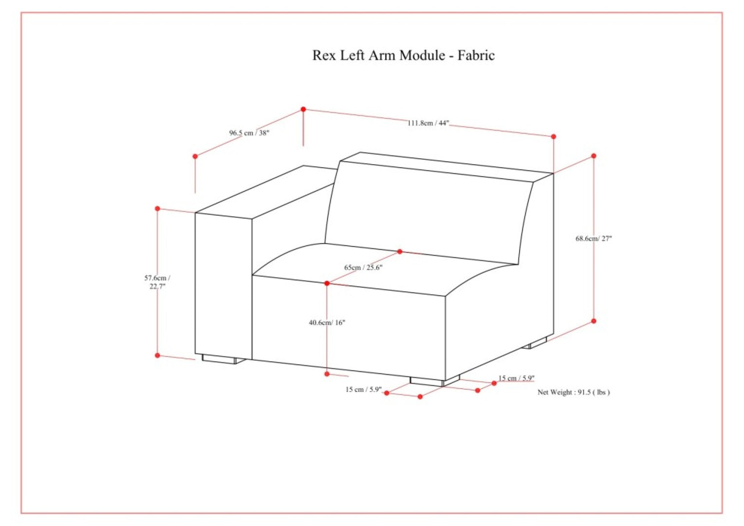 - This modern-style left-arm sofa module with a clean, boxy silhouette and a gently sloping back can be used on its own as an asymmetrical accent chair or combined with other pieces in our handcrafted Rex Modular Sofa Collection; this module accommodates up to 300 lbs.