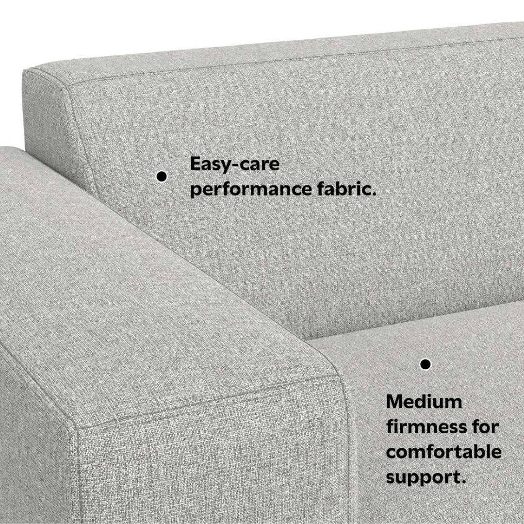 - Upholstered in Pale Grey Performance Fabric, a soft yet durable, easy-care fabric made with 100% recycled polyester and protected with water-repellent and fire-resistant coatings; this eco-friendly fabric meets the Global Recycled Standard and OEKO-TEX® STANDARD 100.