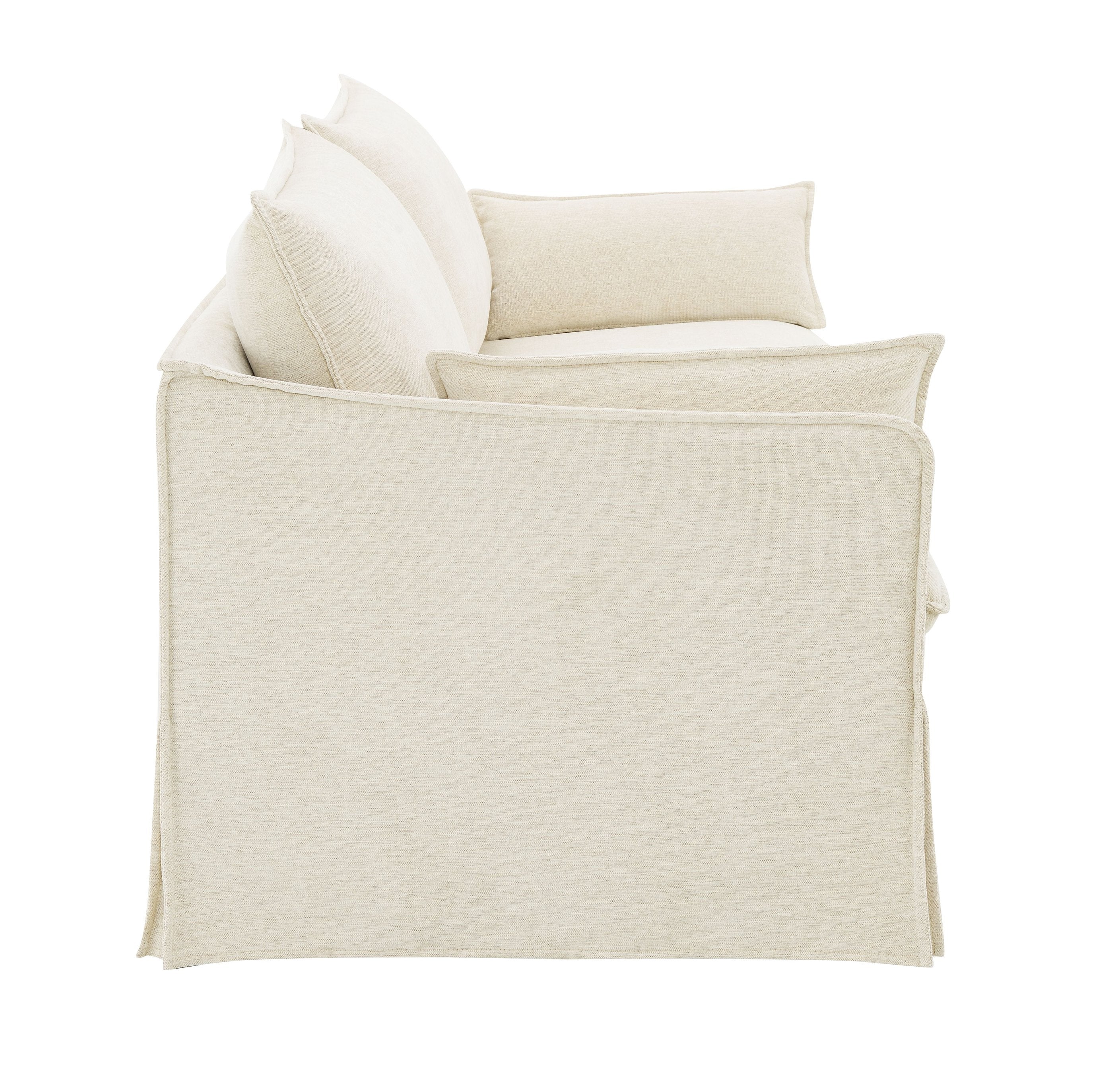 - Finish & style: Neutral beige linen texture, tailored seams, exposed wooden legs for a modern casual look
