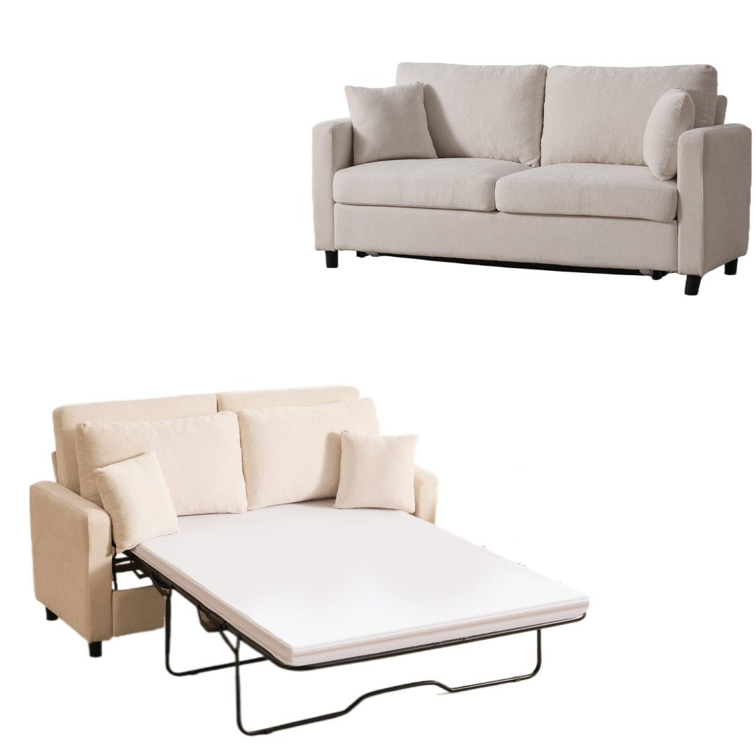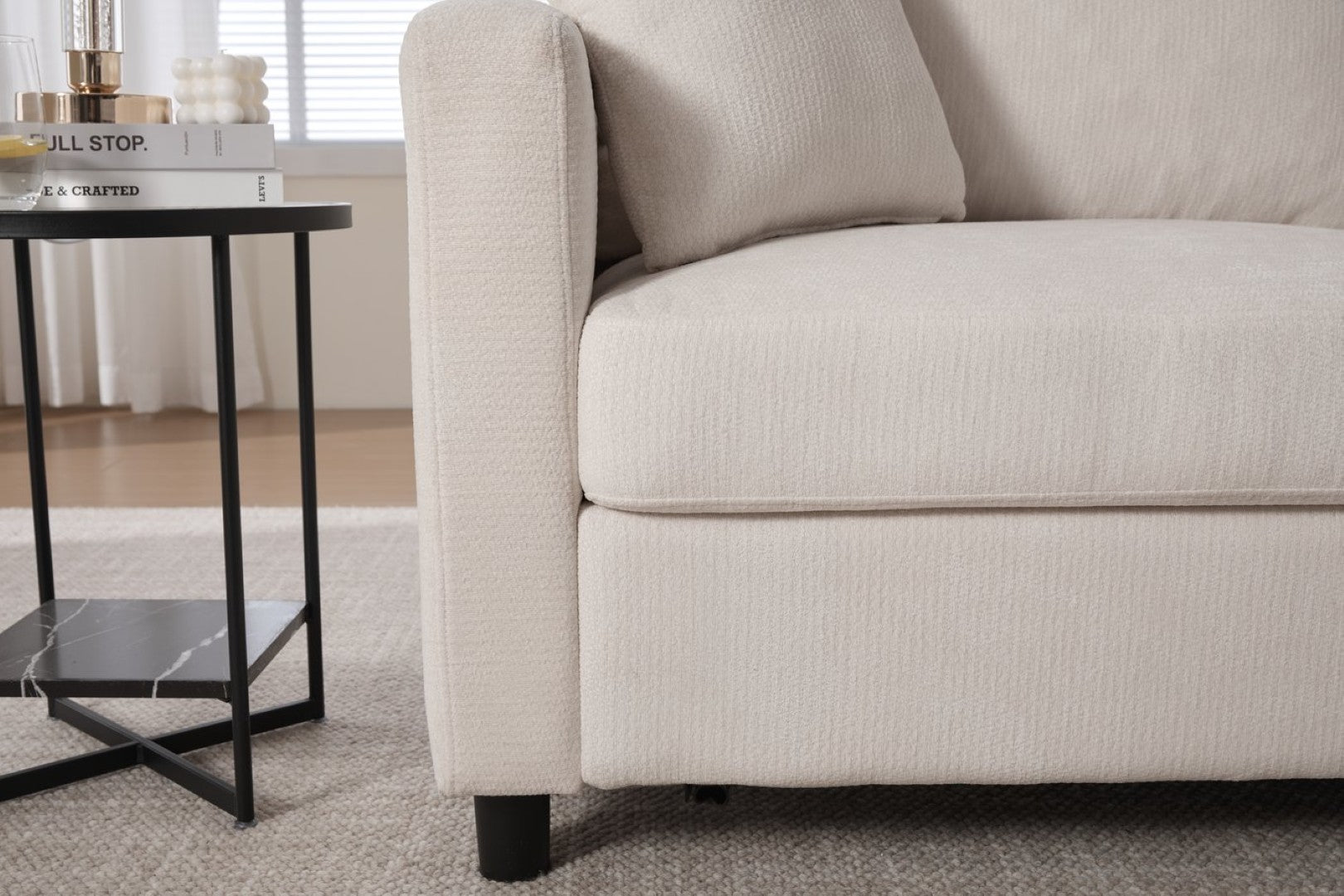 This versatile sleeper sofa bed combines contemporary styling with practical function, perfect for apartments, studios, or any space that needs flexible seating and sleeping options. Upholstered in soft beige polyester with plush cushions and a supportive frame, it converts quickly from a comfortable 2–3 seater sofa into a pull-out bed to accommodate overnight guests without sacrificing everyday comfort or durability.