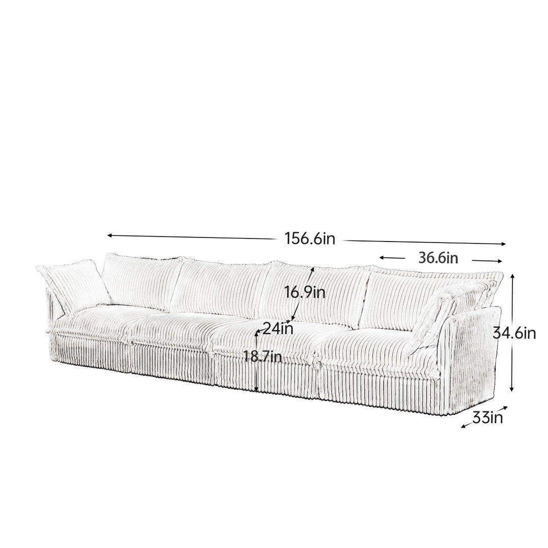 Sink into cloud-like comfort with this extra-deep, slipcovered 4-seater sofa—designed for family living, movie nights, and flexible layouts. Upholstered in soft cream corduroy with removable, machine-washable covers, the sofa combines plush high-density foam cushions and supportive high-back pillows for superior comfort and lasting resilience. Its modular design and sturdy wood frame make it easy to reconfigure, assemble, and maintain, while refined details like cascading hems and tailored stitching give it an elegant, modern look.