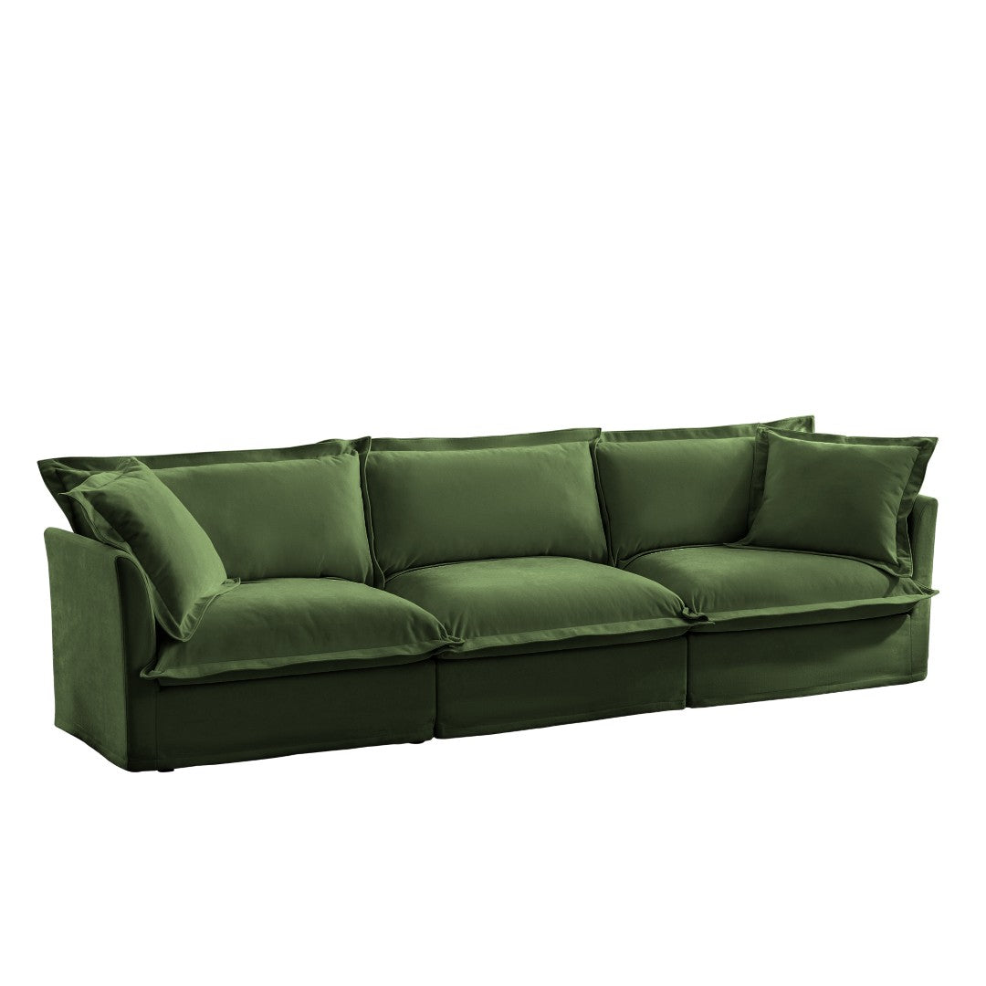 Sink into cloud-like comfort with this modern slipcovered 3-seater sofa, crafted in soft, breathable chenille fabric and designed for everyday living. Plush high-back and side pillows, deep sponge-filled seats, and a removable cover make this couch both inviting and practical—ideal for apartments, family rooms, or home theaters. Its elegant tailoring and flexible modular design let you configure seating to suit your space and needs while maintaining a durable, easy-care finish.