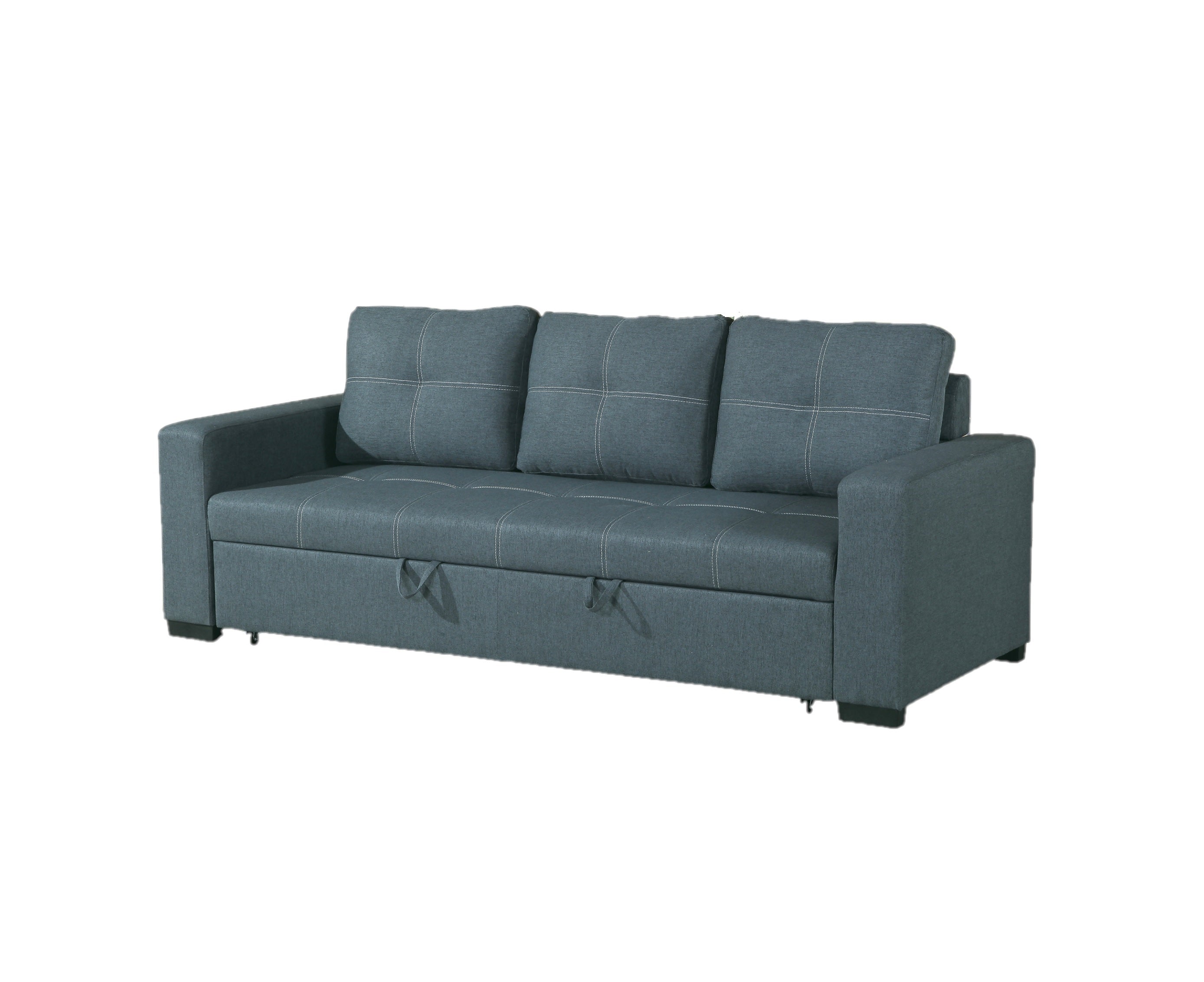This convertible sofa blends contemporary styling with practical functionality—ideal for modern living rooms that need versatile seating and a comfortable overnight sleeping solution. Its clean lines, squared stitching, and durable polyfiber upholstery in blue-grey deliver a polished look while the pull-out bed mechanism makes hosting guests effortless.