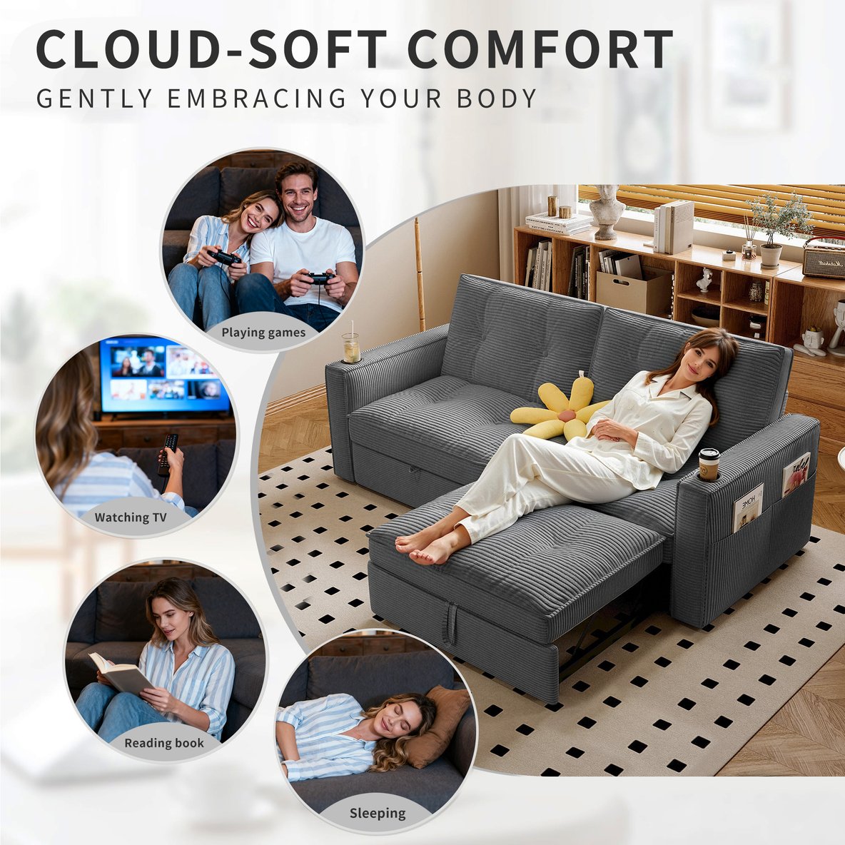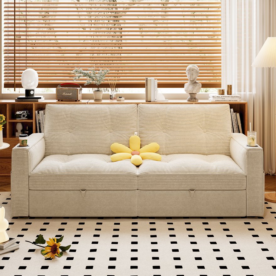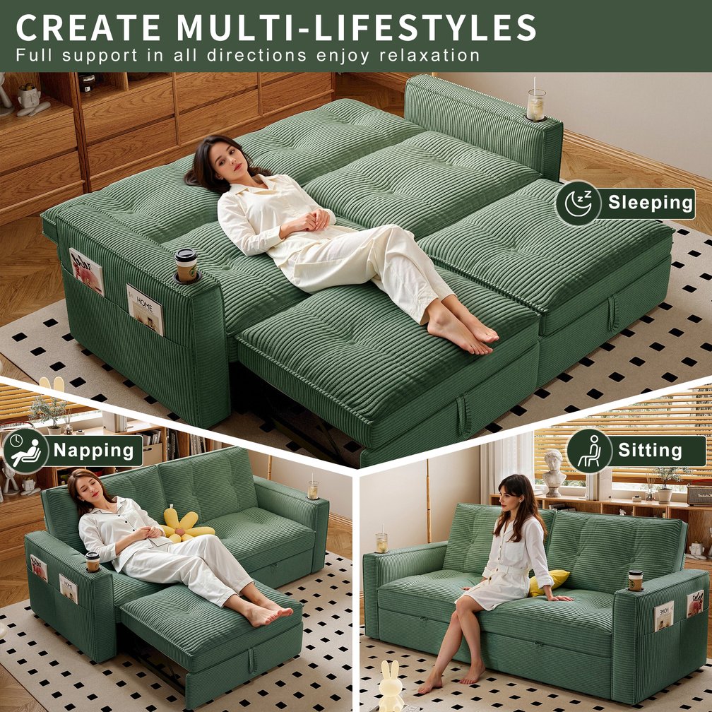 - Convertible 2-in-1 Design: Quickly transforms from a compact two-seater sofa to a full guest bed with a simple pull-and-unfold mechanism; handles at the base of the cushion make conversion effortless.