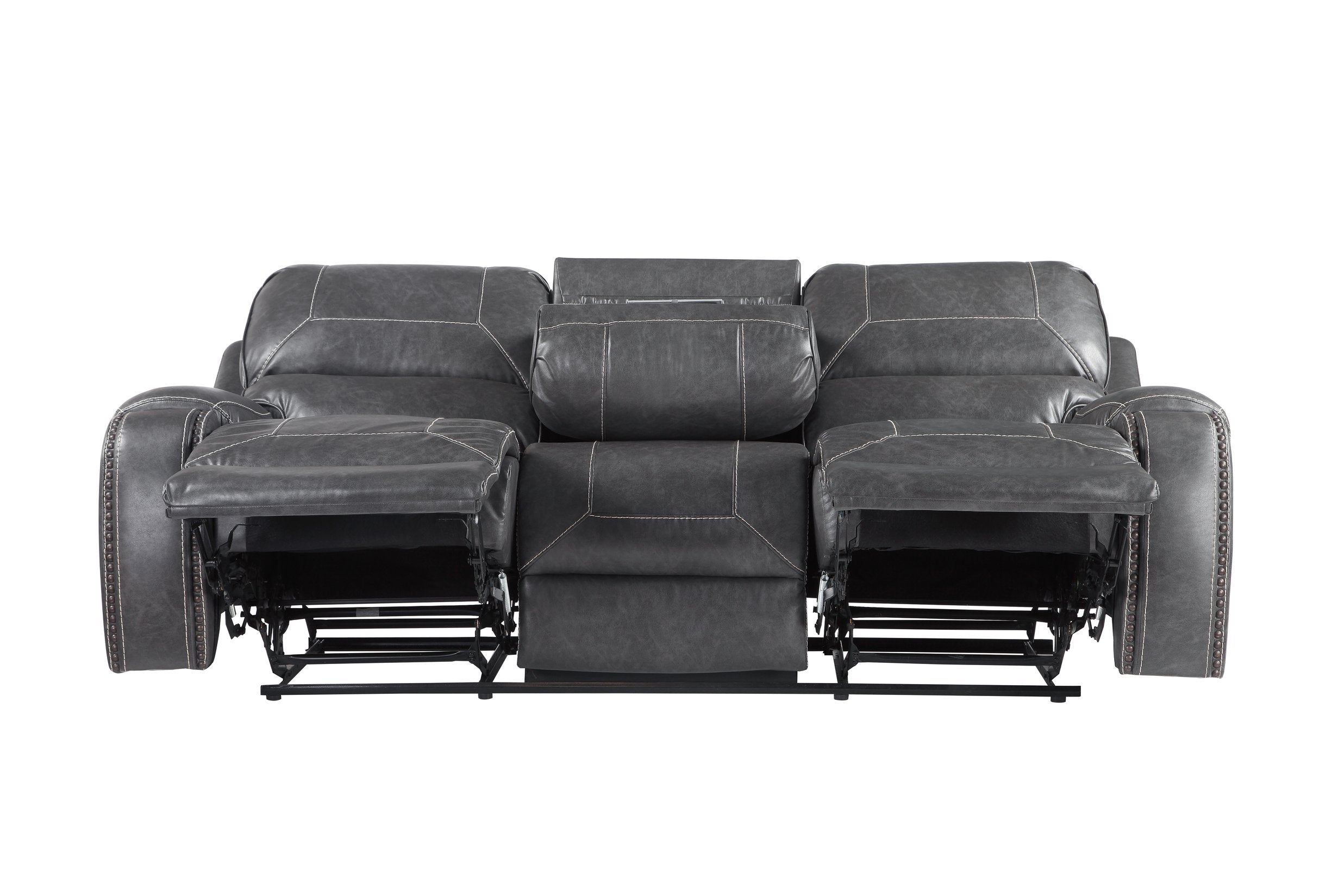 Relax in contemporary comfort with the Keily manual reclining sofa. Designed for everyday living and tech-ready convenience, this sofa blends a marbled faux-leather finish with practical storage and charging features to keep your living room organized and comfortable. Its durable construction and thoughtfully placed amenities make it ideal for movie nights, family gatherings, or quiet reading sessions.