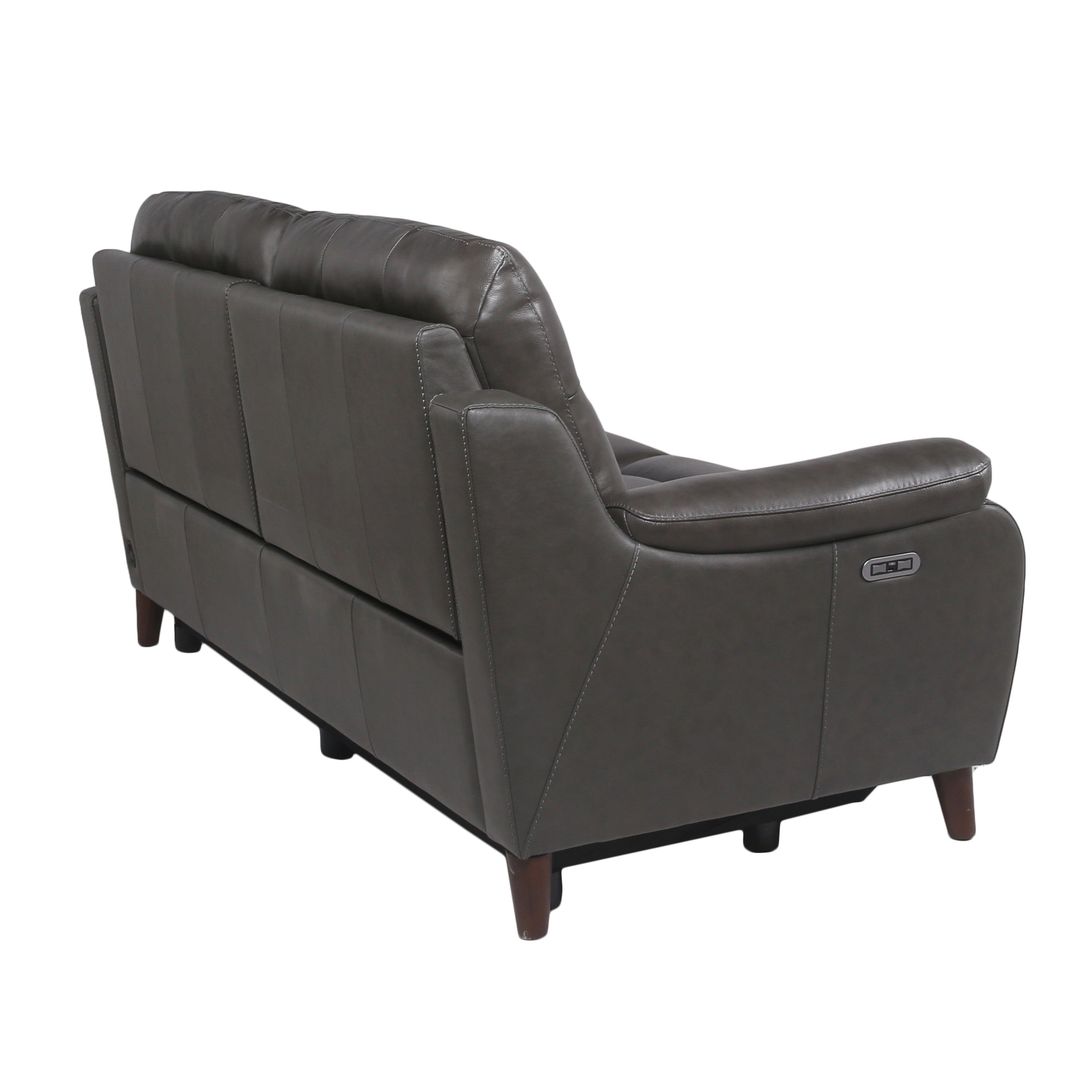 Sink into sophisticated comfort with this luxurious top-grain leather reclining sofa. Expertly crafted for both style and durability, it combines premium materials and thoughtful engineering—power reclining at both the footrest and headrest—for effortless relaxation. The charcoal grey finish and tailored details create a polished centerpiece that complements modern and transitional interiors alike.