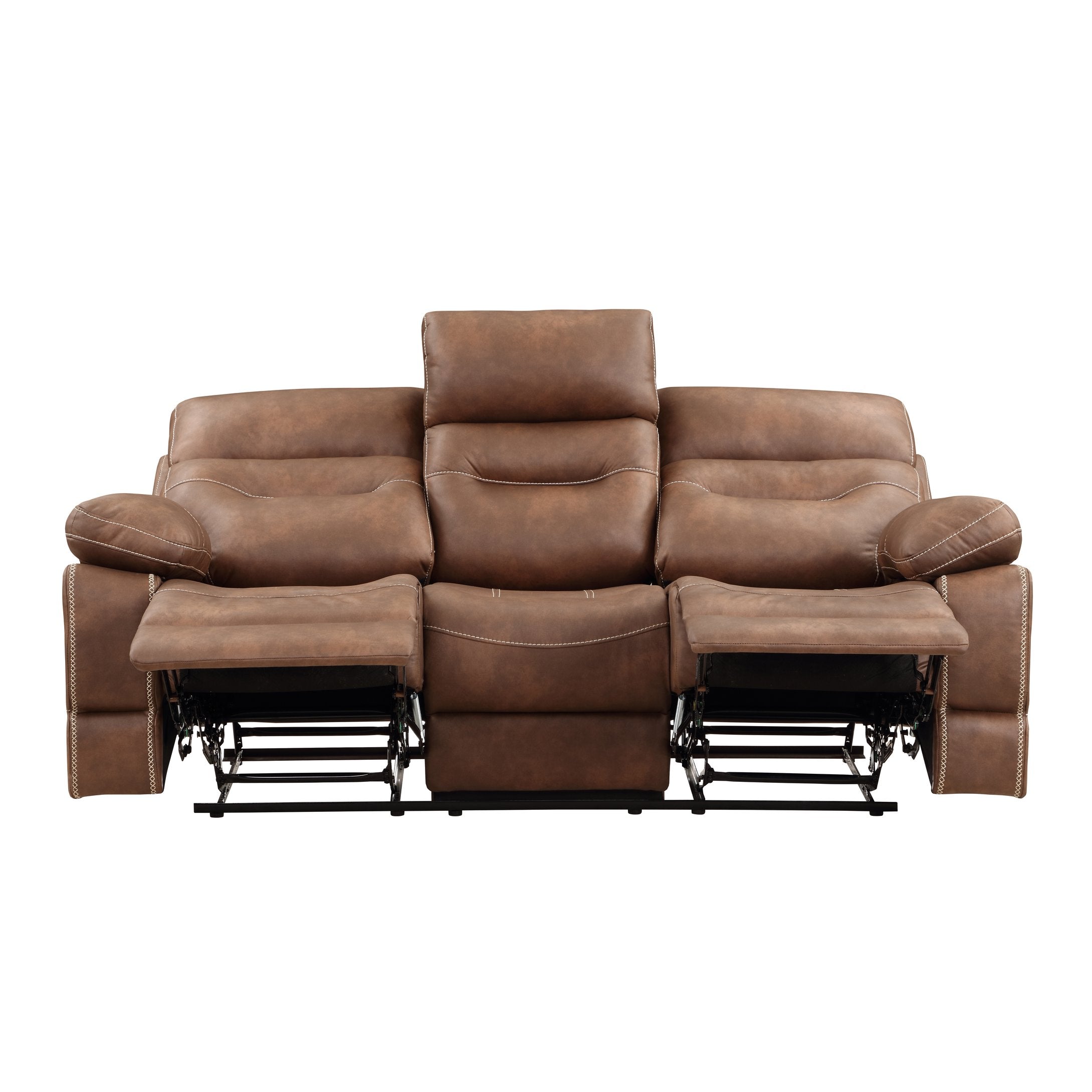 Experience everyday comfort and timeless style with this manually reclining sofa, thoughtfully designed for durability, easy transport, and a luxurious feel. Its rich chestnut microsuede, tailored stitching, and supportive construction make it a versatile centerpiece for family rooms, media spaces, or cozy lounges.