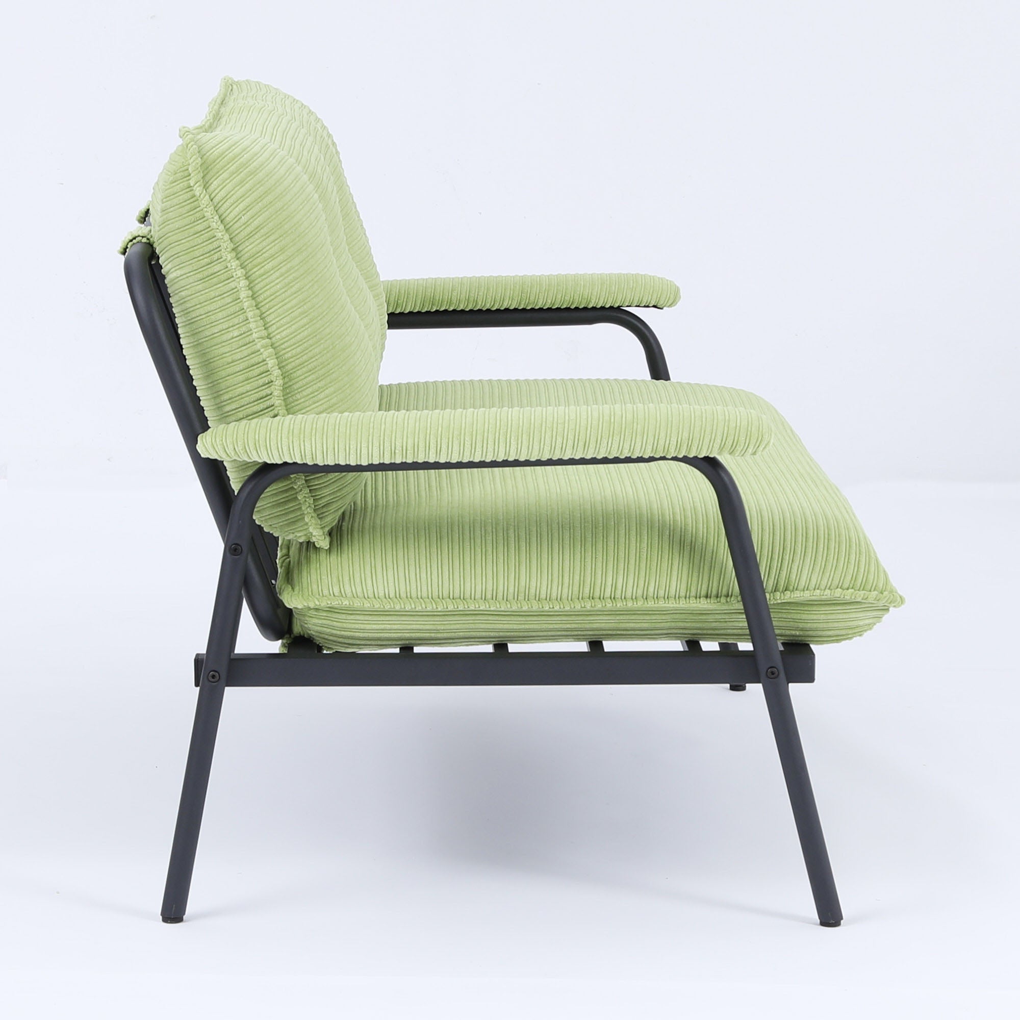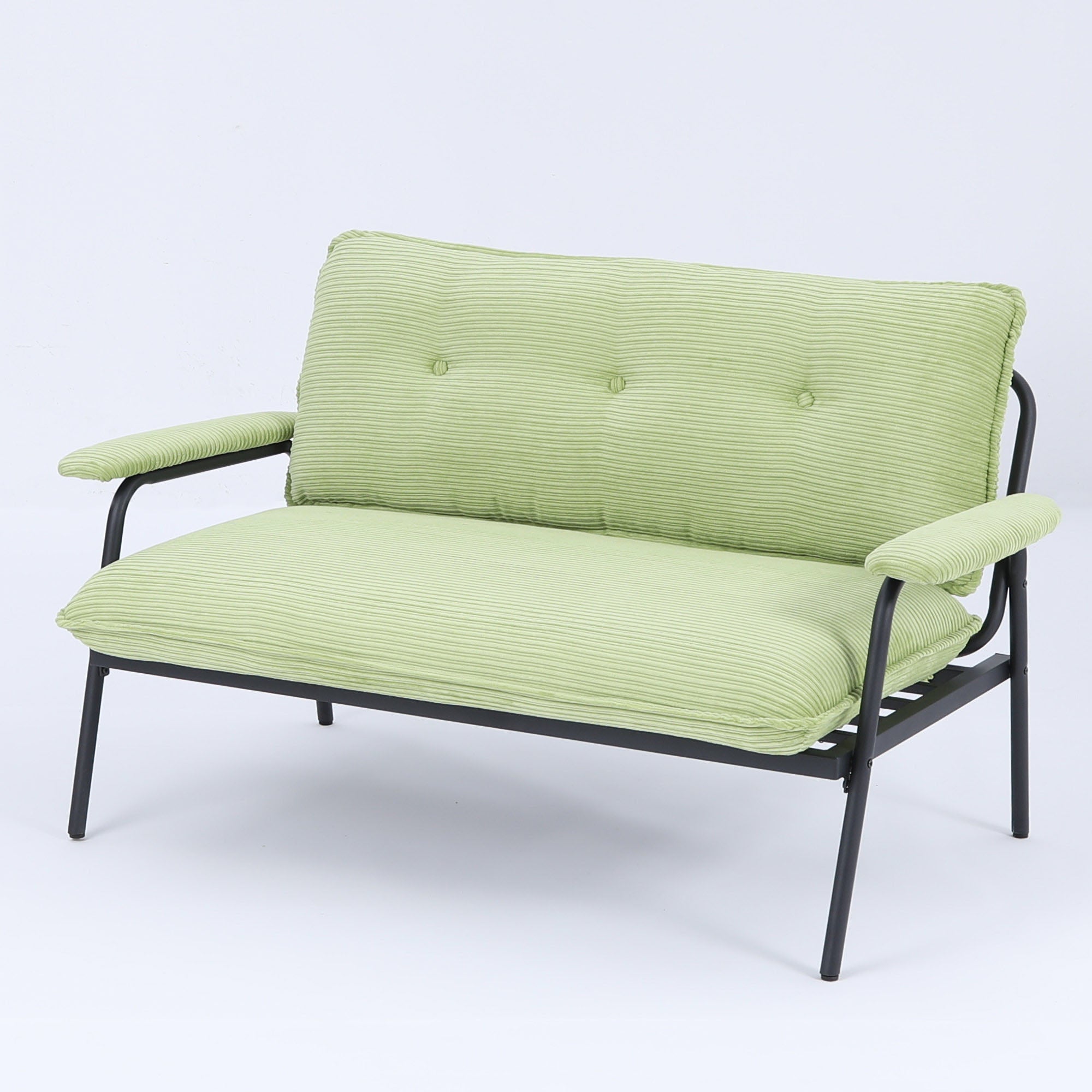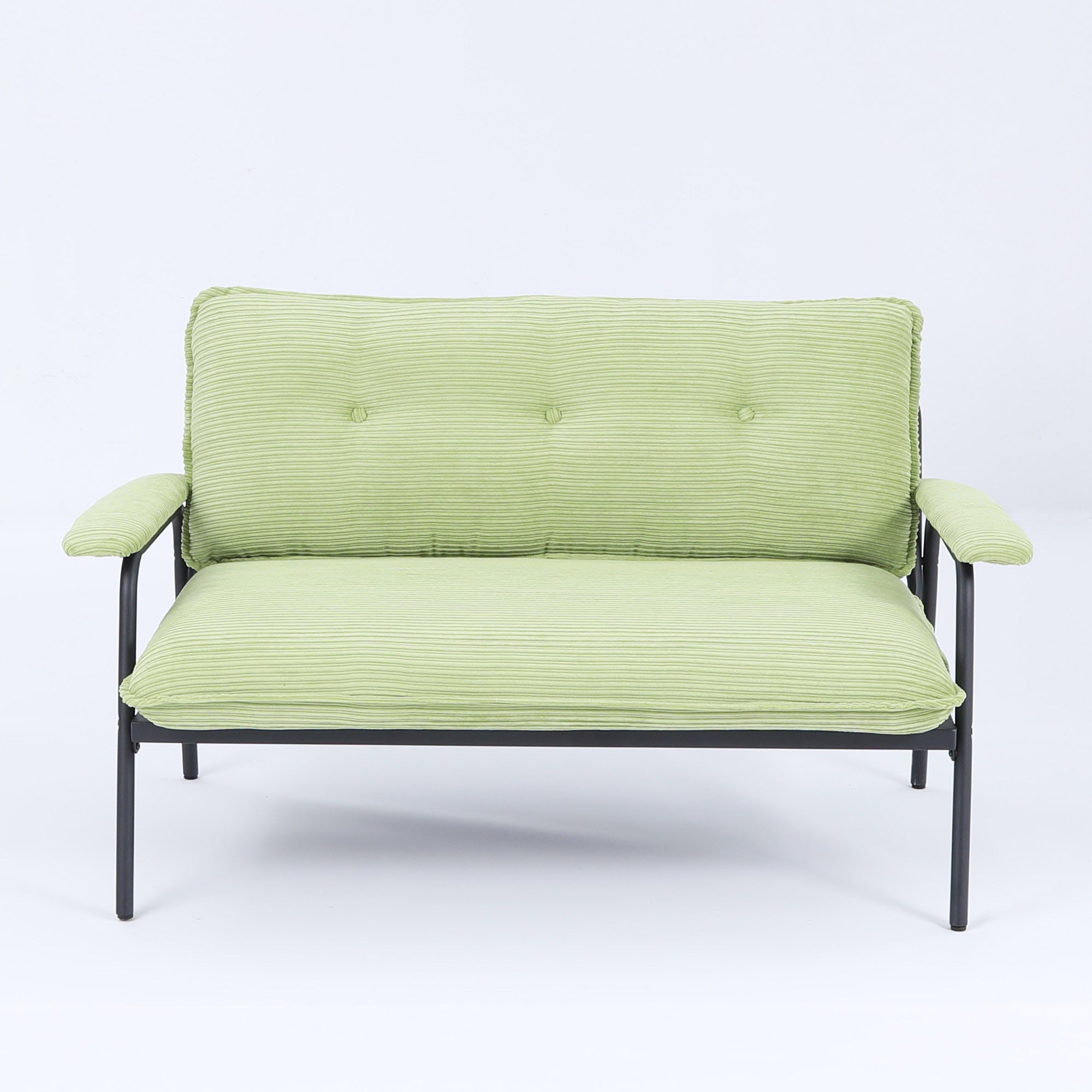 - The exterior design features a simple and modern style. The fresh green striped fabric is paired with a black metal frame, giving a natural and refreshing visual impression. It also goes well with various American home decoration styles. The backrest adopts a classic button tufted design, adding a sense of refinement and retro charm.