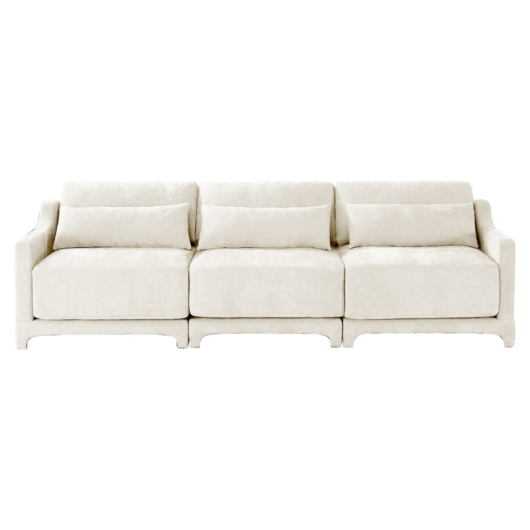 Bring comfort and contemporary style to any room with this elegant three-seater sofa. Upholstered in soft, textured chenille and supported by a sturdy wooden base, it combines ergonomic design, high-resilience sponge cushions, and refined armrests to create a welcoming seating solution for bedrooms, studies, hotels, or apartments. Easy to install and available in multiple configurations, this sofa delivers lasting comfort and a polished look that complements a variety of interiors.