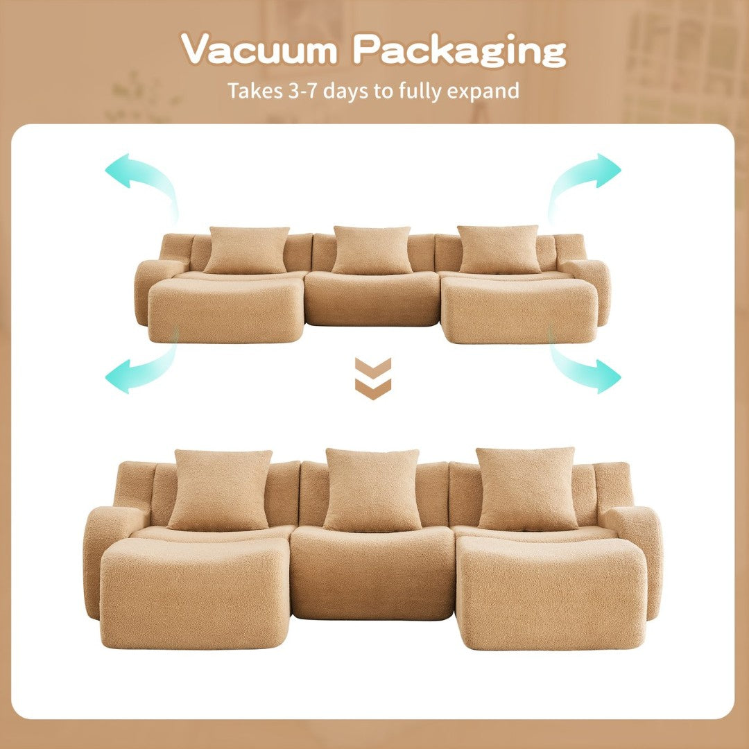 Sink into cloud-like comfort with this U-shaped boneless sofa, finished in plush camel teddy fabric and designed for effortless living. Its modular, assembly-free design lets you arrange a cozy reading nook or a social centerpiece in moments, while thoughtful details like curved armrests, high-density sponge seating, and a non-slip base deliver lasting support and stability. Ideal for modern living rooms seeking both style and comfort.