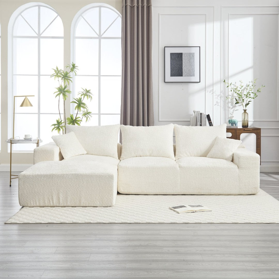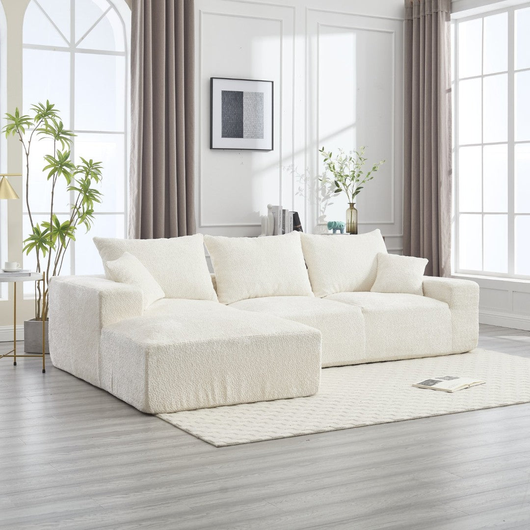 Experience relaxed, modern comfort with this L-shaped chenille sofa—designed for generous seating, soft touch, and effortless styling. Its enveloping layout and plush foam cushions make it ideal for family gatherings, movie nights, or lounging solo, while the durable chenille upholstery adds texture and warmth to any living space.