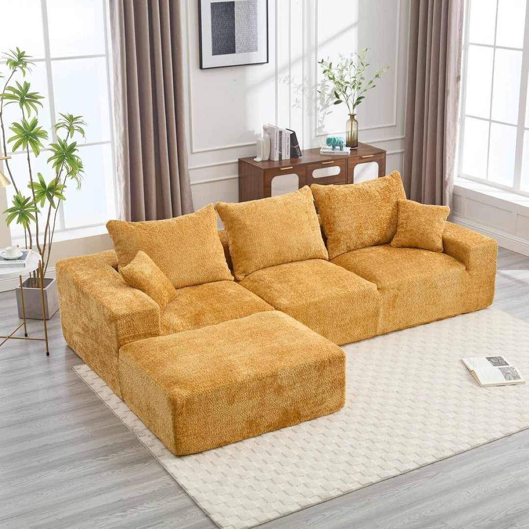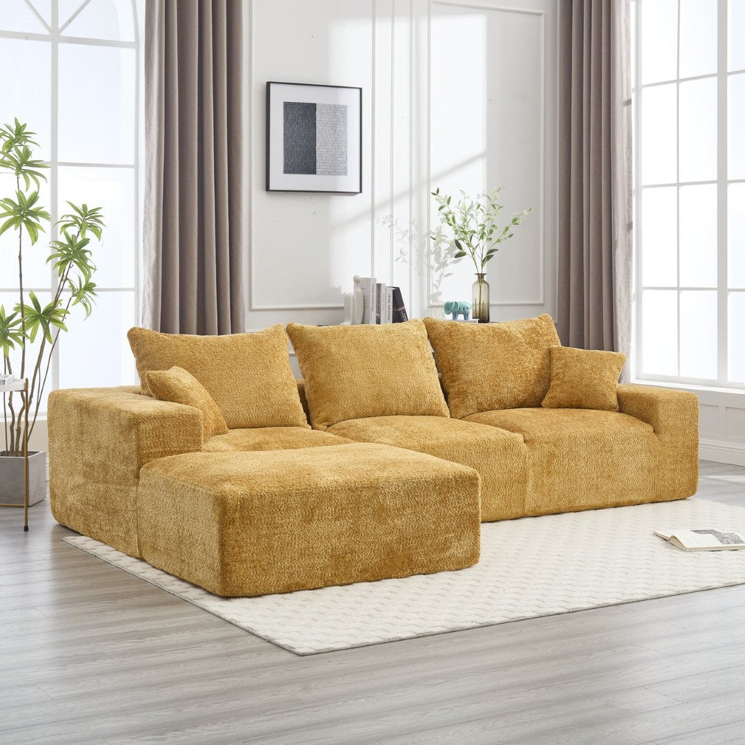 Experience relaxed, modern comfort with this L-shaped chenille sofa—designed for generous seating, soft touch, and effortless styling. Its enveloping layout and plush foam cushions make it ideal for family gatherings, movie nights, or lounging solo, while the durable chenille upholstery adds texture and warmth to any living space.