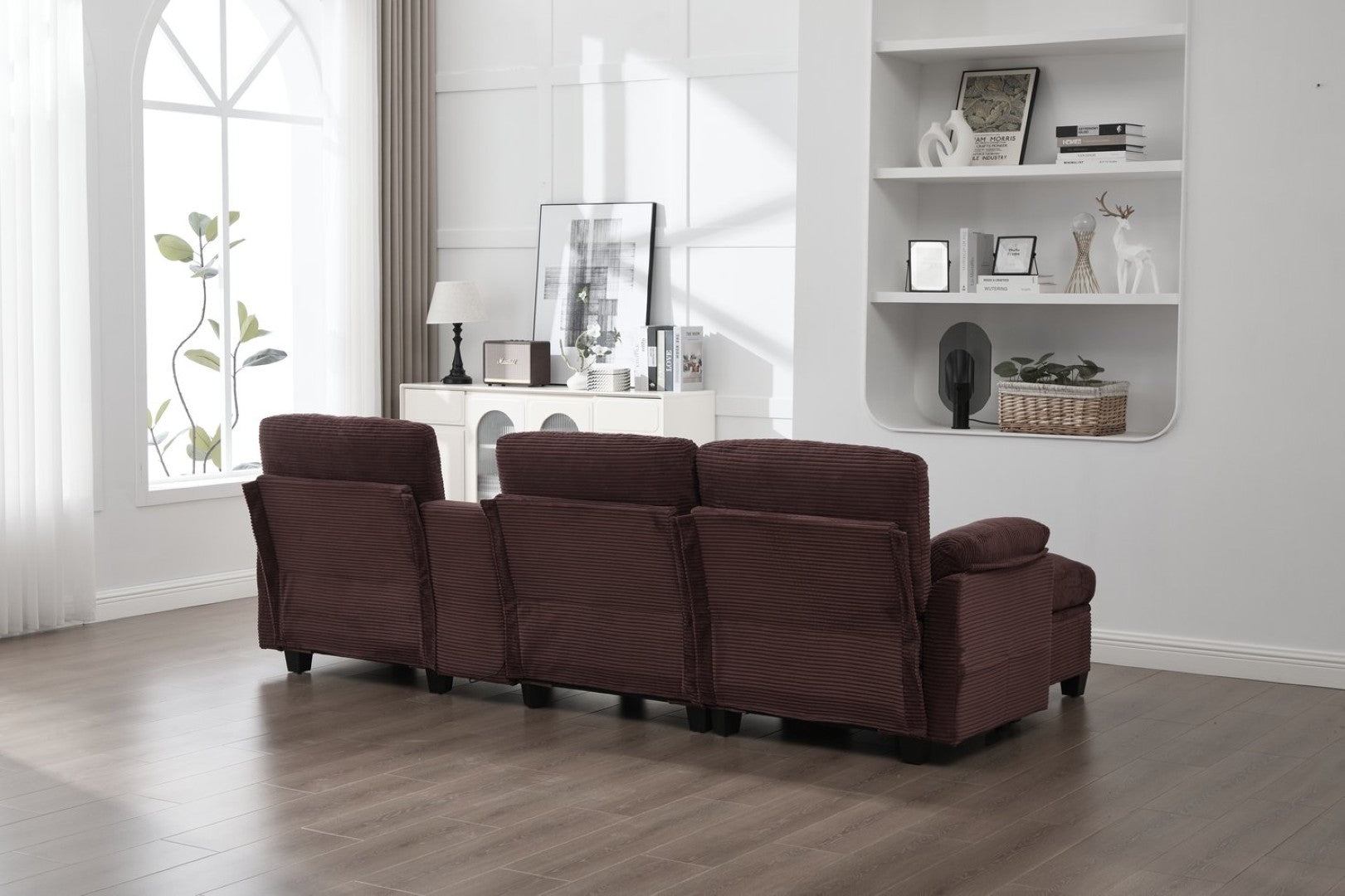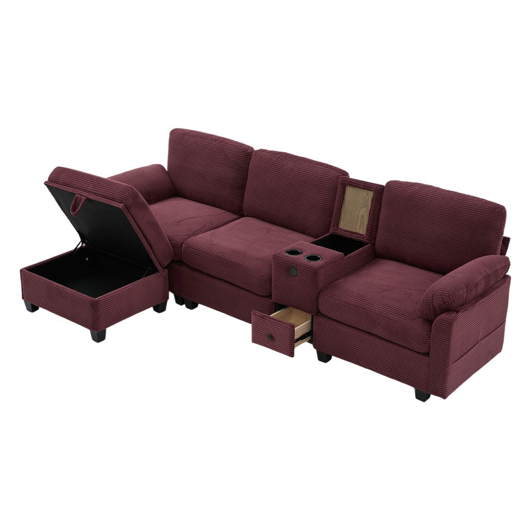 Elevate your living space with this versatile L‑shaped corduroy sofa designed for modern apartment living. Combining plush comfort, smart storage, and integrated charging, it’s ideal for family movie nights, entertaining guests, or creating a tidy, multi‑functional seating area. Thoughtful details—like a movable console, ottoman with hidden storage, and easy‑access side pockets—make everyday life simpler without sacrificing style.