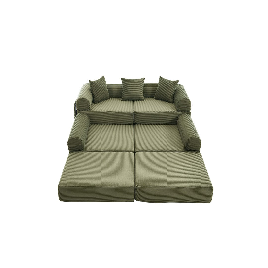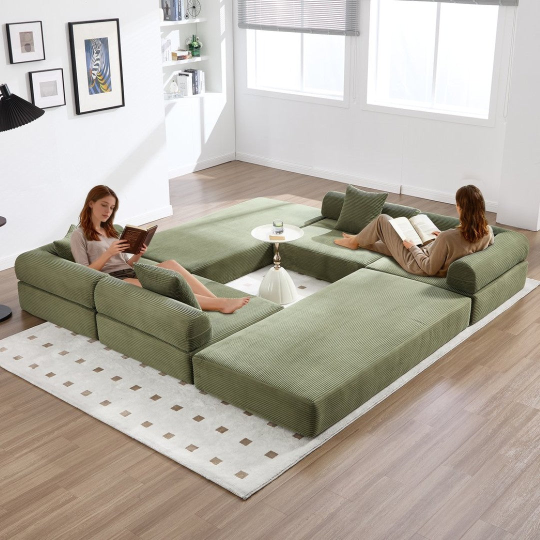 - Modular functionality: Converts between a relaxation sofa, double lounge chair, large sofa bed, and children’s play mat to meet multiple needs in small spaces.