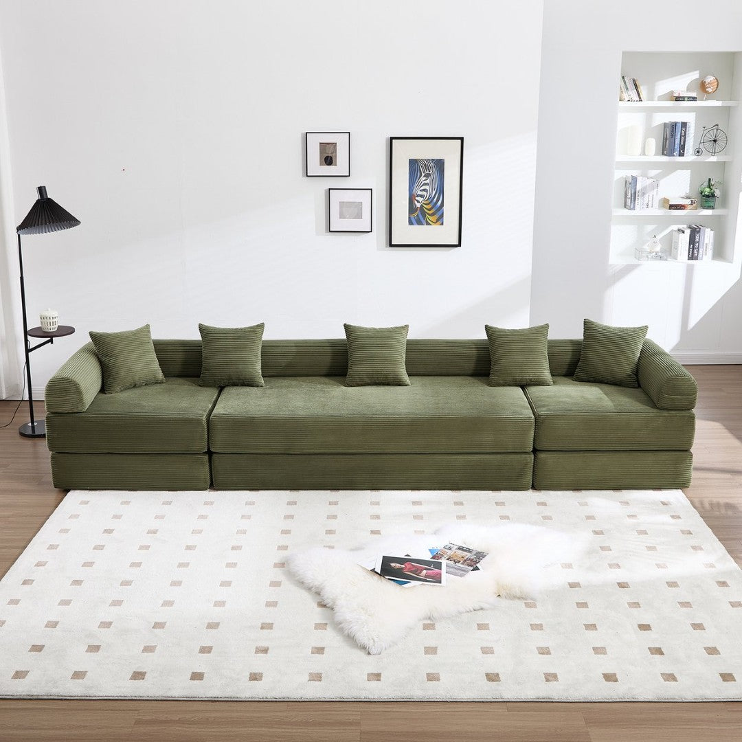 - 【Assembly free+space saving】The corduroy sofa adopts compression and vacuum sealing methods to reduce space and carbon dioxide emissions during transportation. After opening the packaging, let the sofa bed breathe for 48-72 hours to restore its original shape and size.