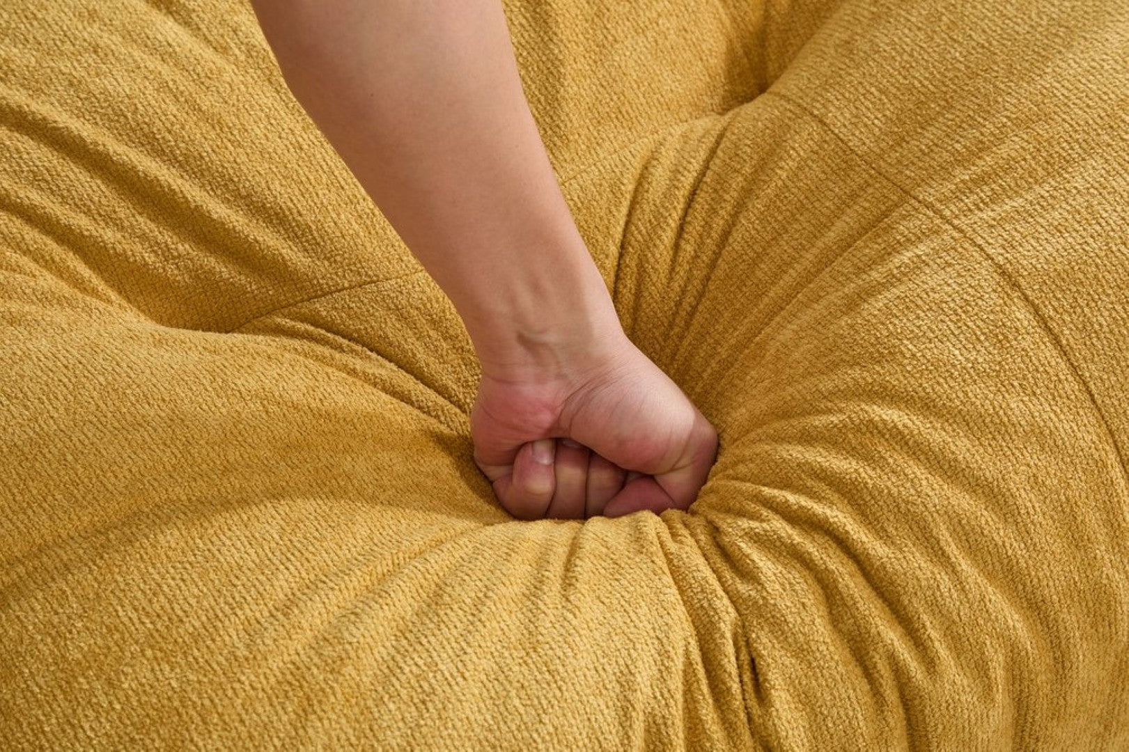 - Cloud-like comfort: Pelletized velvet (granule-fleece) upholstery and fluffy suede-like surface provide a soft, smooth, skin-friendly feel with tufted details and rounded armrests for enhanced comfort.