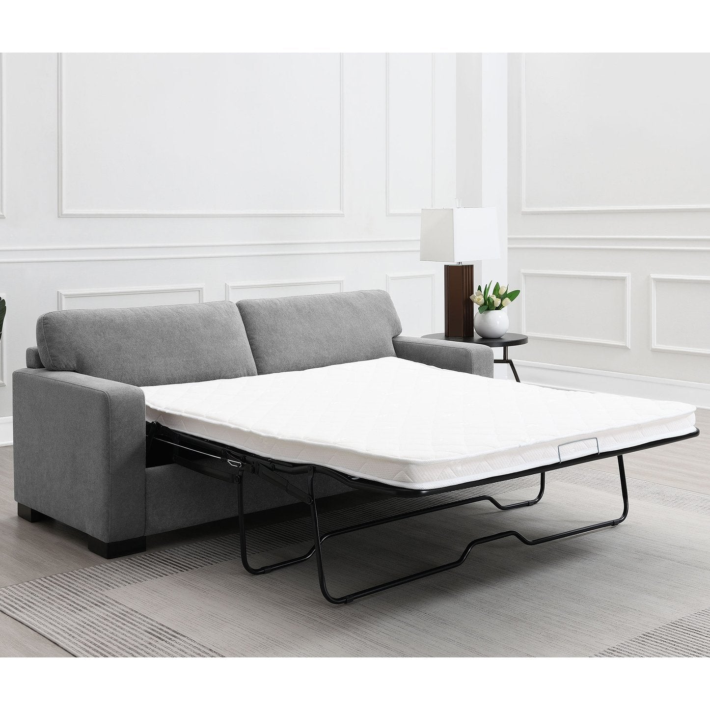This contemporary sleeper sofa blends clean-lined modern style with everyday comfort, making it an ideal centerpiece for living rooms, guest rooms, or multifunctional spaces. The light grey upholstery and track-arm silhouette offer a versatile, understated look while the sturdy frame and queen mattress provide reliable support whether you're lounging daily or hosting overnight guests.