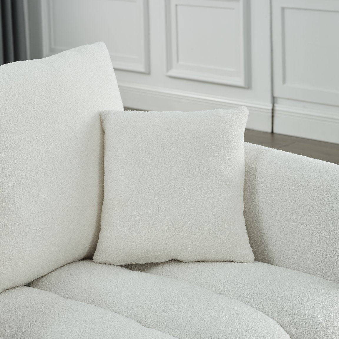 - The modern sofa is made of soft teddy fabric plus foam padding to provide you with maximum comfort. Sitting on it, you will be surrounded by ultra-soft plump backrests with optimal comfort angles, making you feel like you are sitting on a cloud. Add this sofa to make your living room space more sophisticated and elegant.