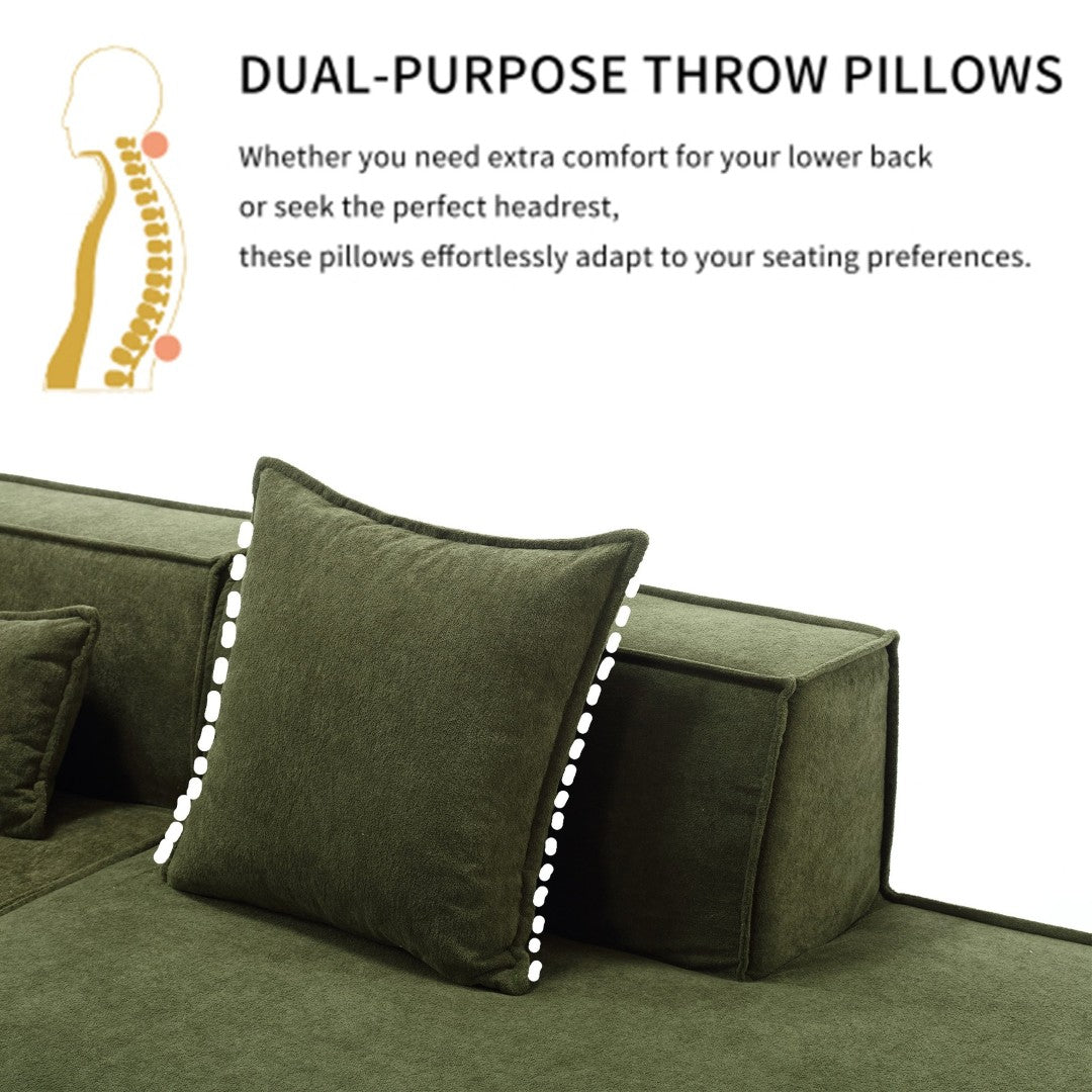 - Modern sectional sofa: Elevate your living space with this sectional sofa that features a simple style that emphasizes clean lines and a timeless yet chic look. The upholstered sofa section includes square armrests, 2 pillows and 1 waist pillow, making it the perfect choice for living rooms, apartments and bedrooms. Its spacious design allows for flexible seating arrangements, ideal for social gatherings, family movie nights, or casual gatherings with friends.
