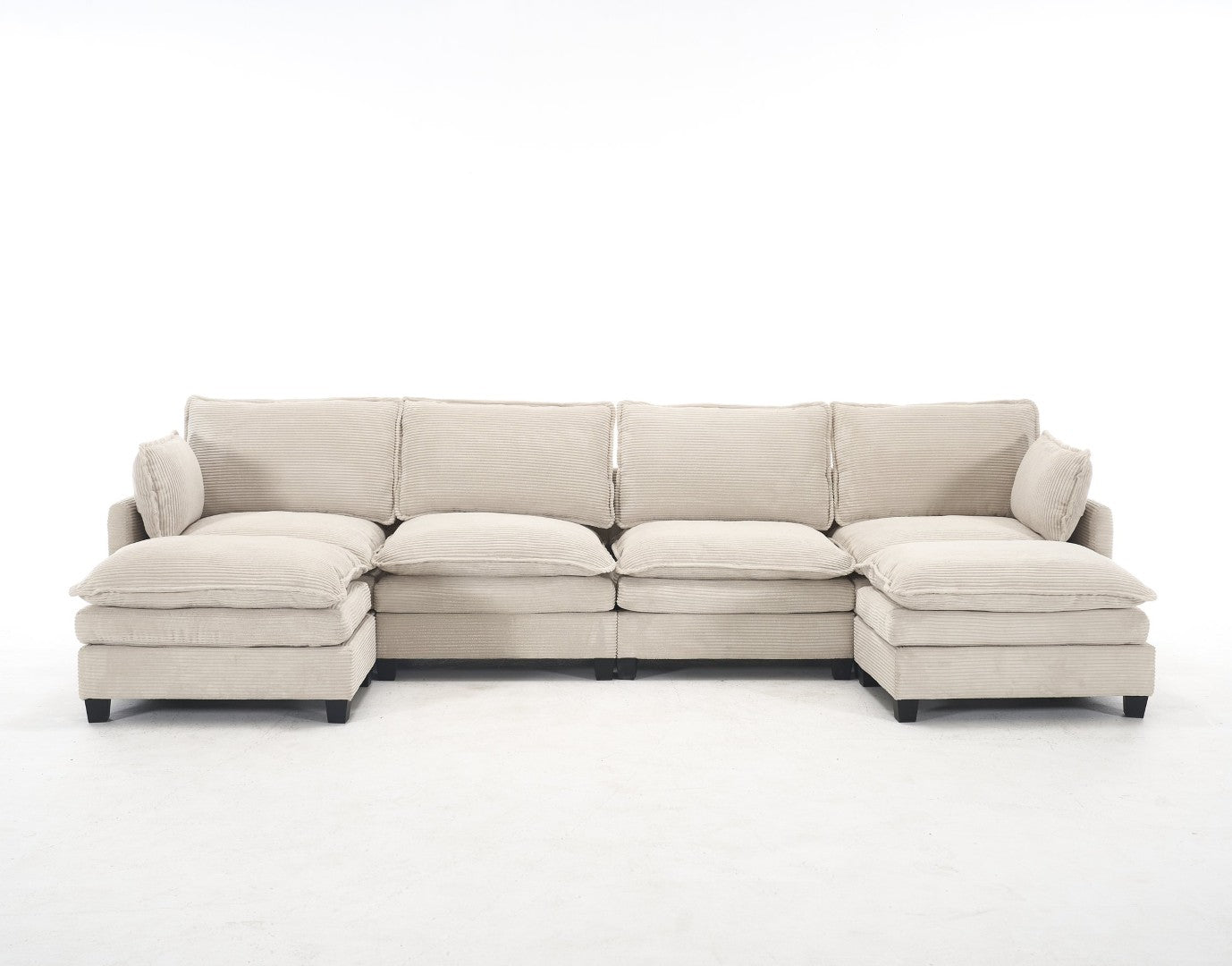Create a luxurious, comfortable centerpiece for your living room with this oversized modular U-shaped sofa. Upholstered in soft velvet and designed for flexible arrangements, it combines deep seating, supportive pocket springs, and foam cushioning to deliver both style and long-lasting comfort for family gatherings or relaxing evenings.