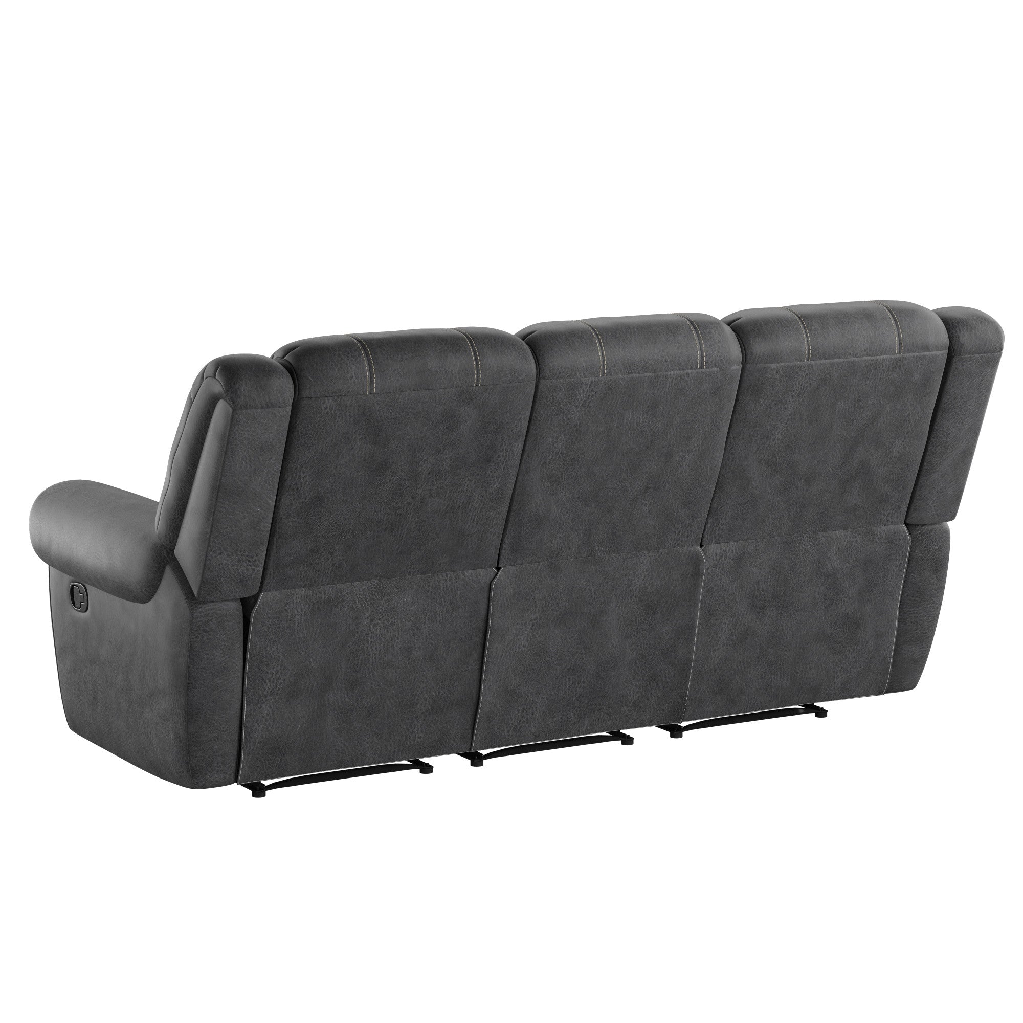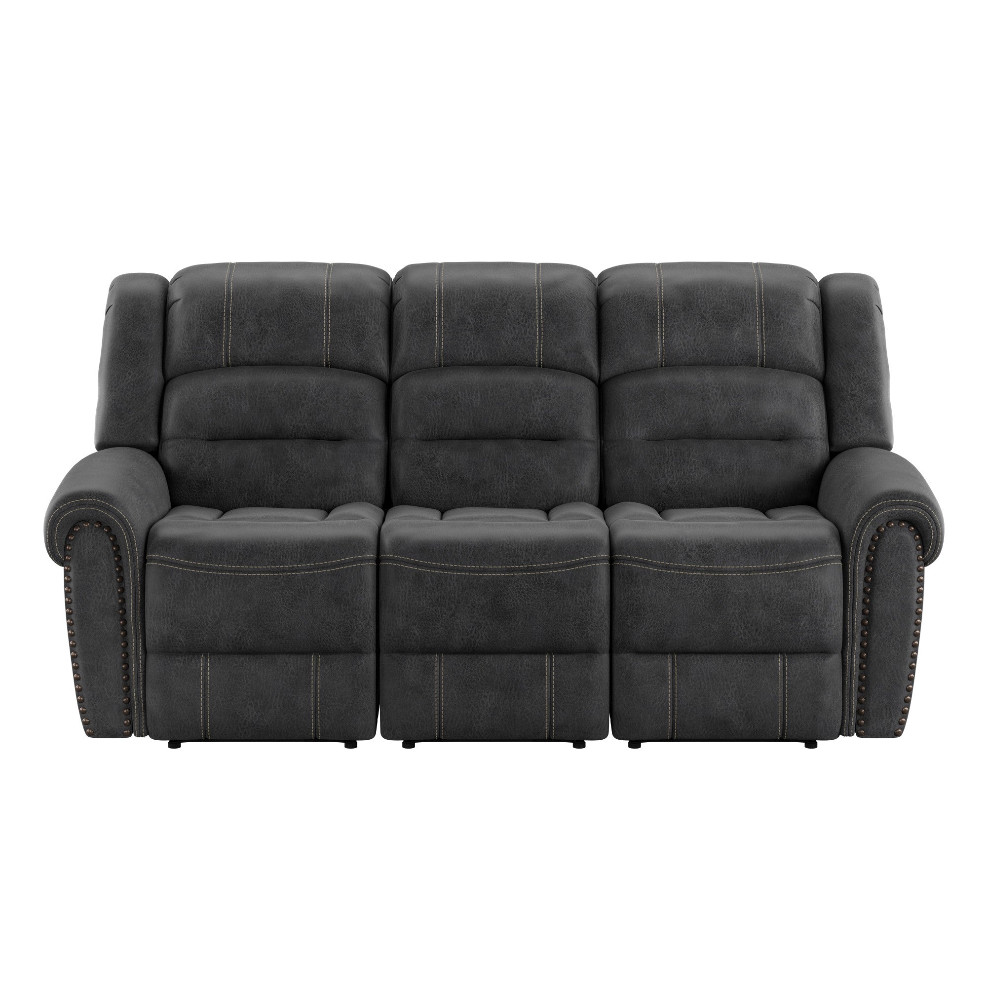 Bring comfort and classic style to your living room with this gray reclining sofa. Upholstered in a slate-gray fabric, it blends timeless traditional design with modern functionality—easy-care materials, smooth reclining action, and a welcoming silhouette make it ideal for everyday relaxation or entertaining.