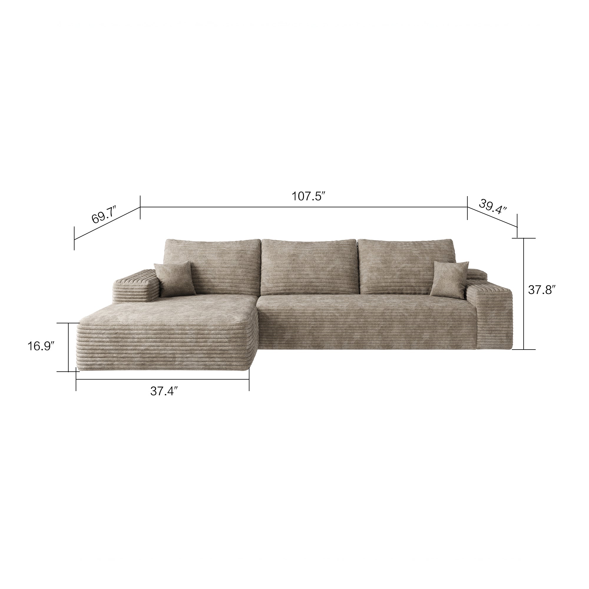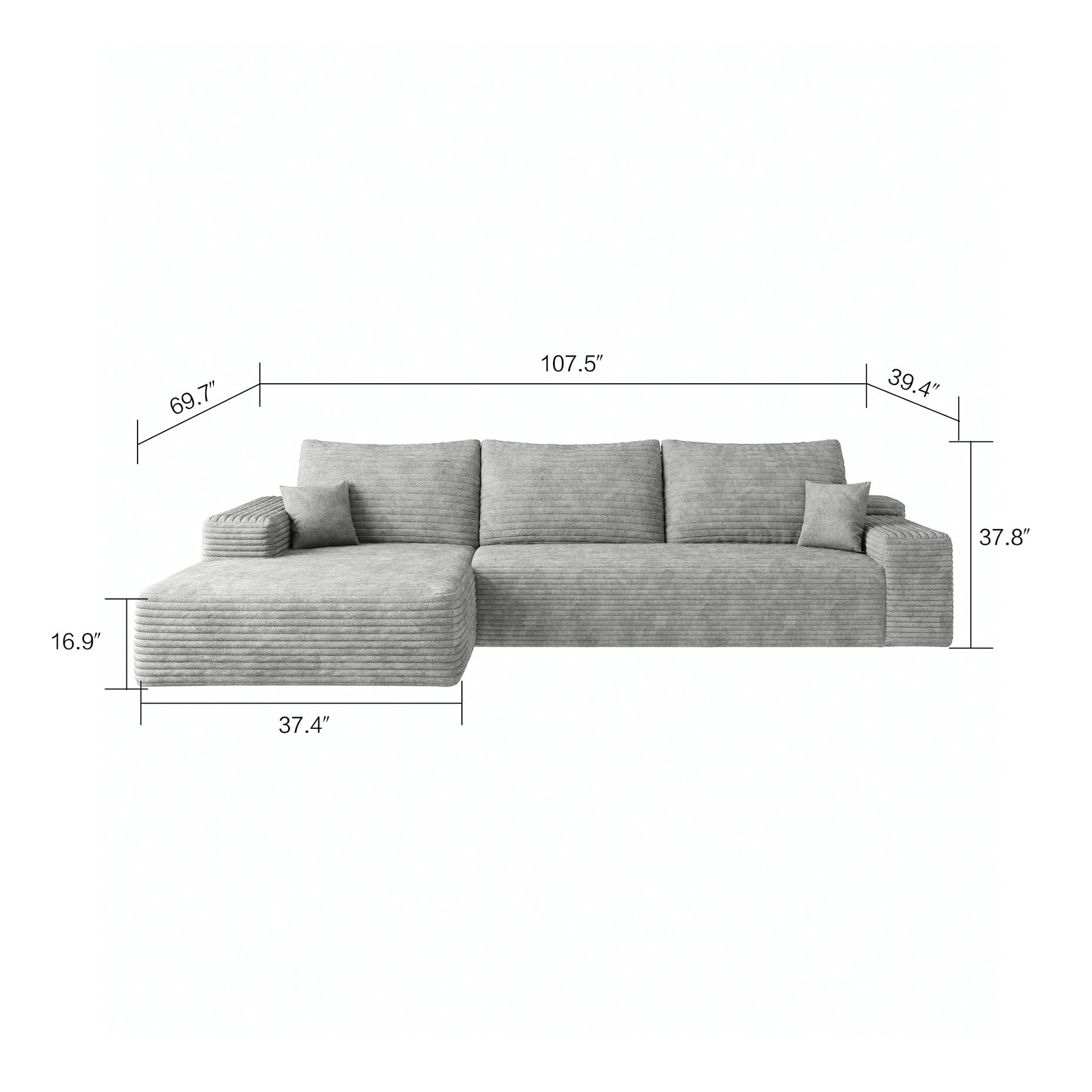 - Modular Sectional Sofa:This sectional sofa featuring a sleek design, clean lines, and high-quality plush corduroy Fabric,This sectional set maximizes space when placed against a wall,this corner sofa effortlessly adds a timeless and sophisticated touch to your home. Designed to be the focal point of attention, it's an ideal choice for elevating the ambiance of living rooms, apartments, and bedrooms.