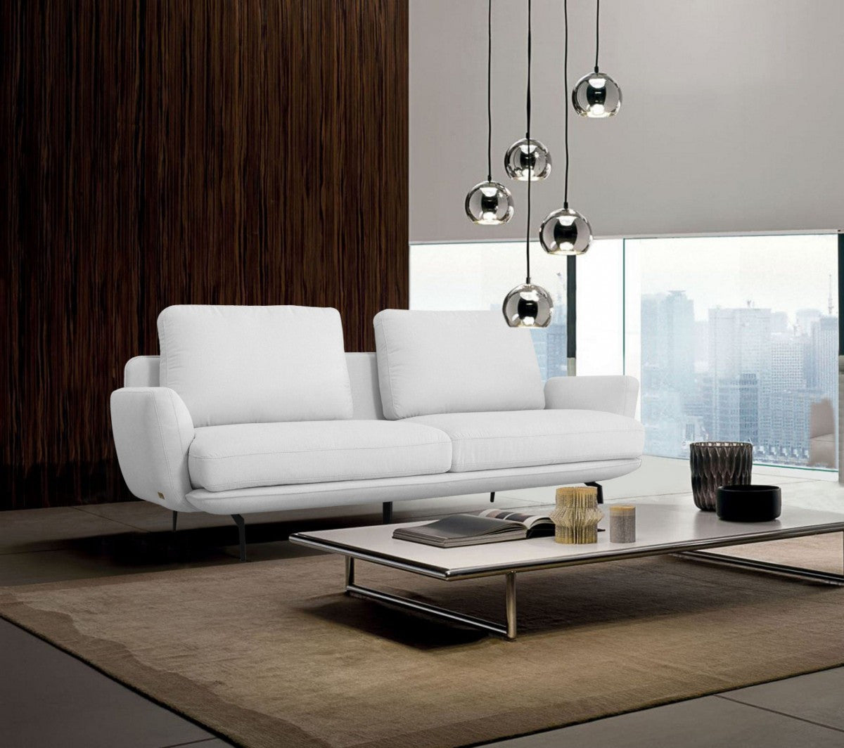 - The design style features a pillow back and round arm.