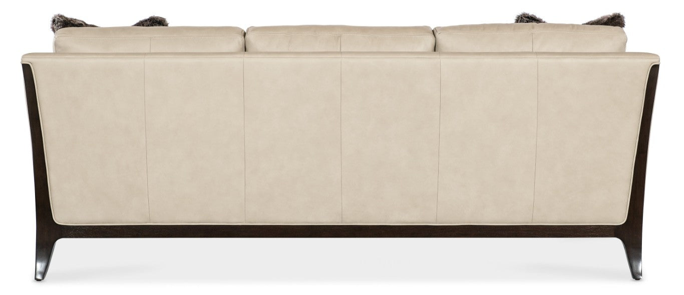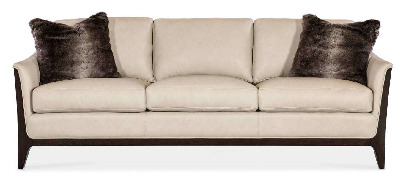 Elevate your living space with a refined mid-century inspired sofa that pairs timeless silhouette and modern upholstery for everyday comfort and lasting style. Clean lines and flared wood legs create a light, airy profile while premium semi-aniline leather and tailored trim deliver a luxurious, crafted finish. Ideal for transitional interiors, this sofa balances sculptural form with plush seating and coordinated accent pillows.