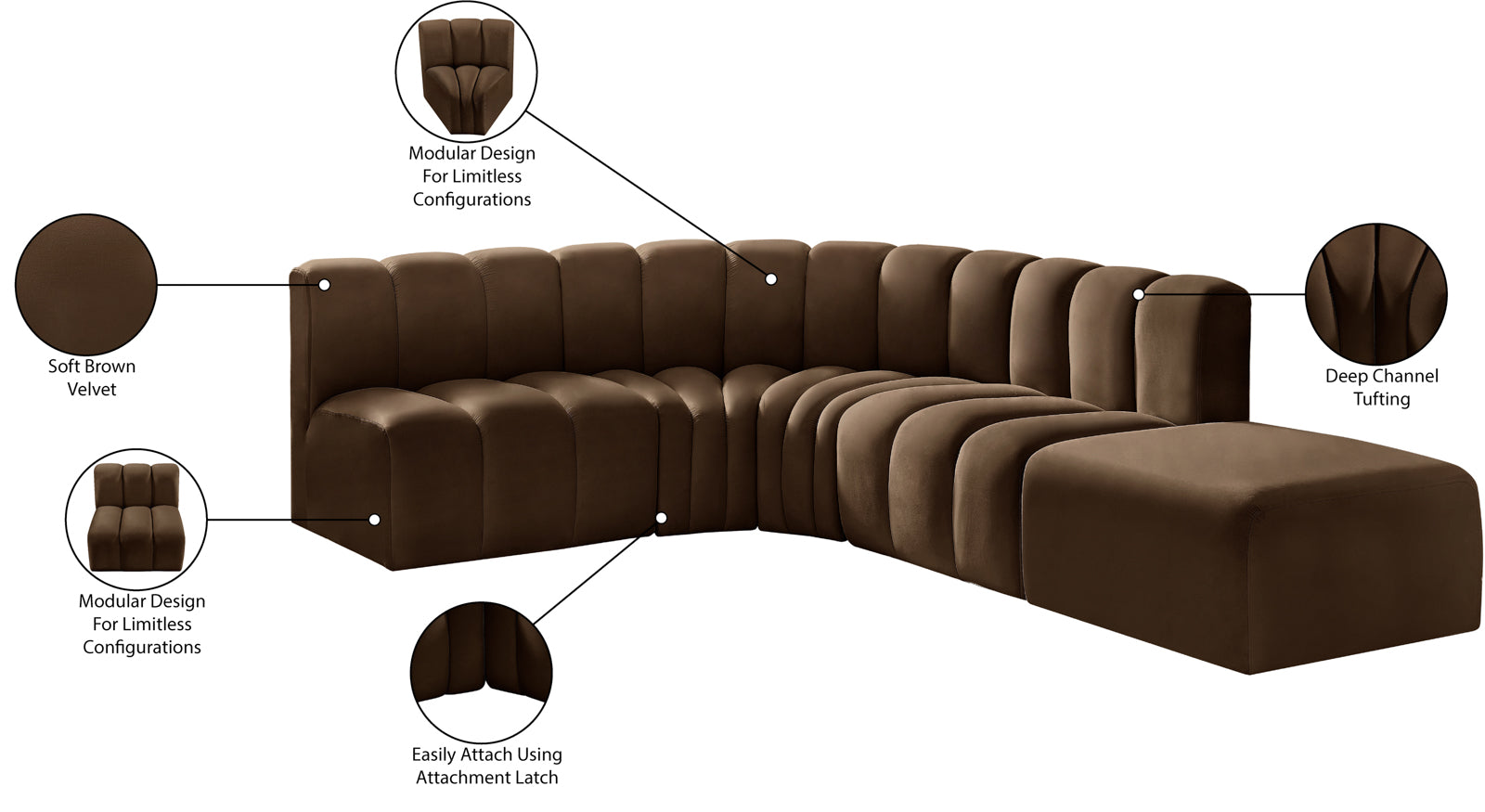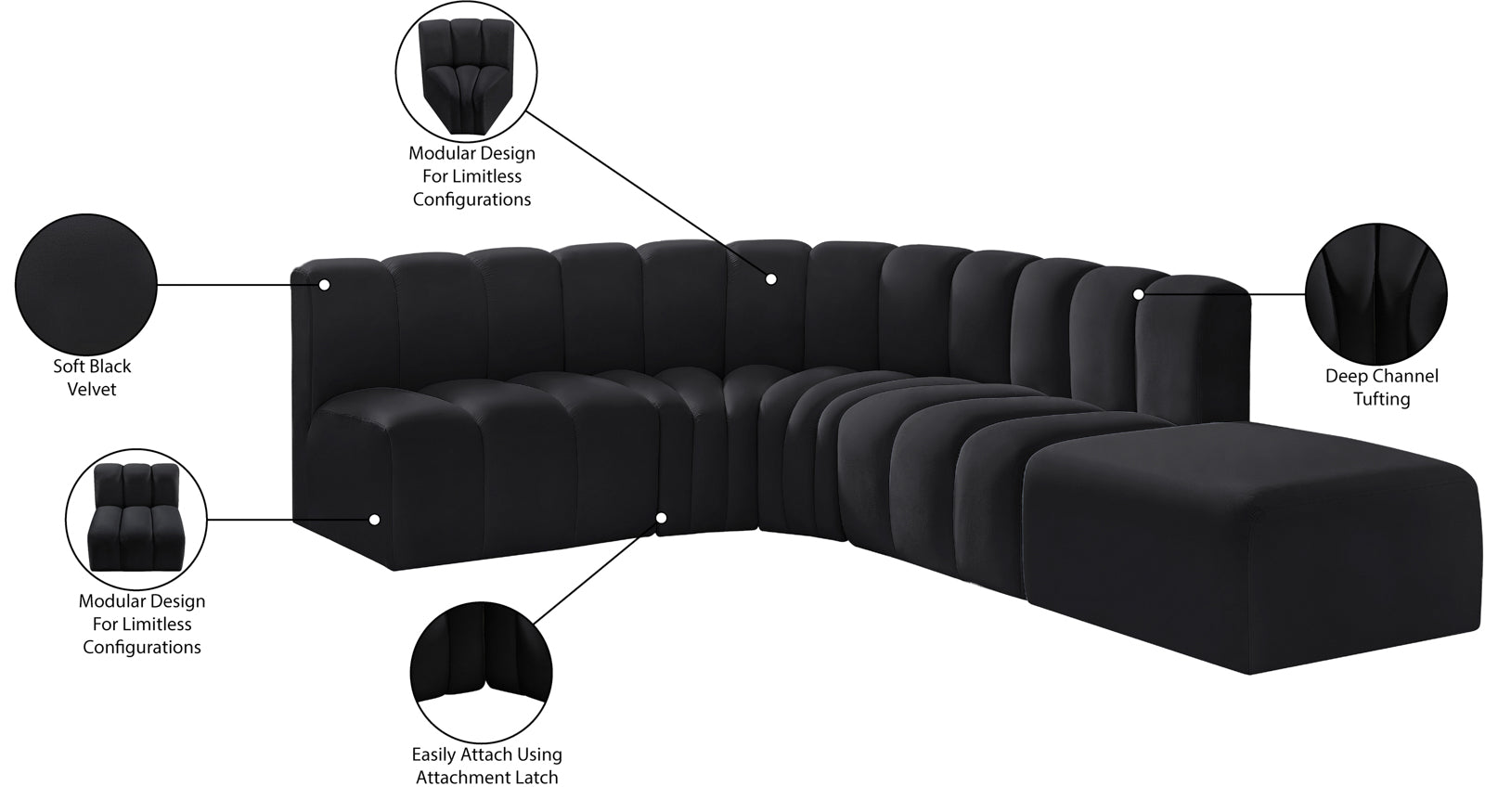 - Color: 101Black-S5C Arc Black Vegan Leather Modular Sofa - Black Vegan Leather