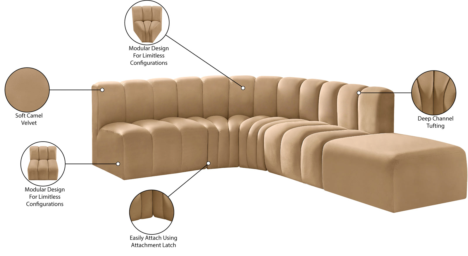 - Dimensions: 101Black-S5C Arc Black Vegan Leather Modular Sofa - 127" W x 61" D x 30" H