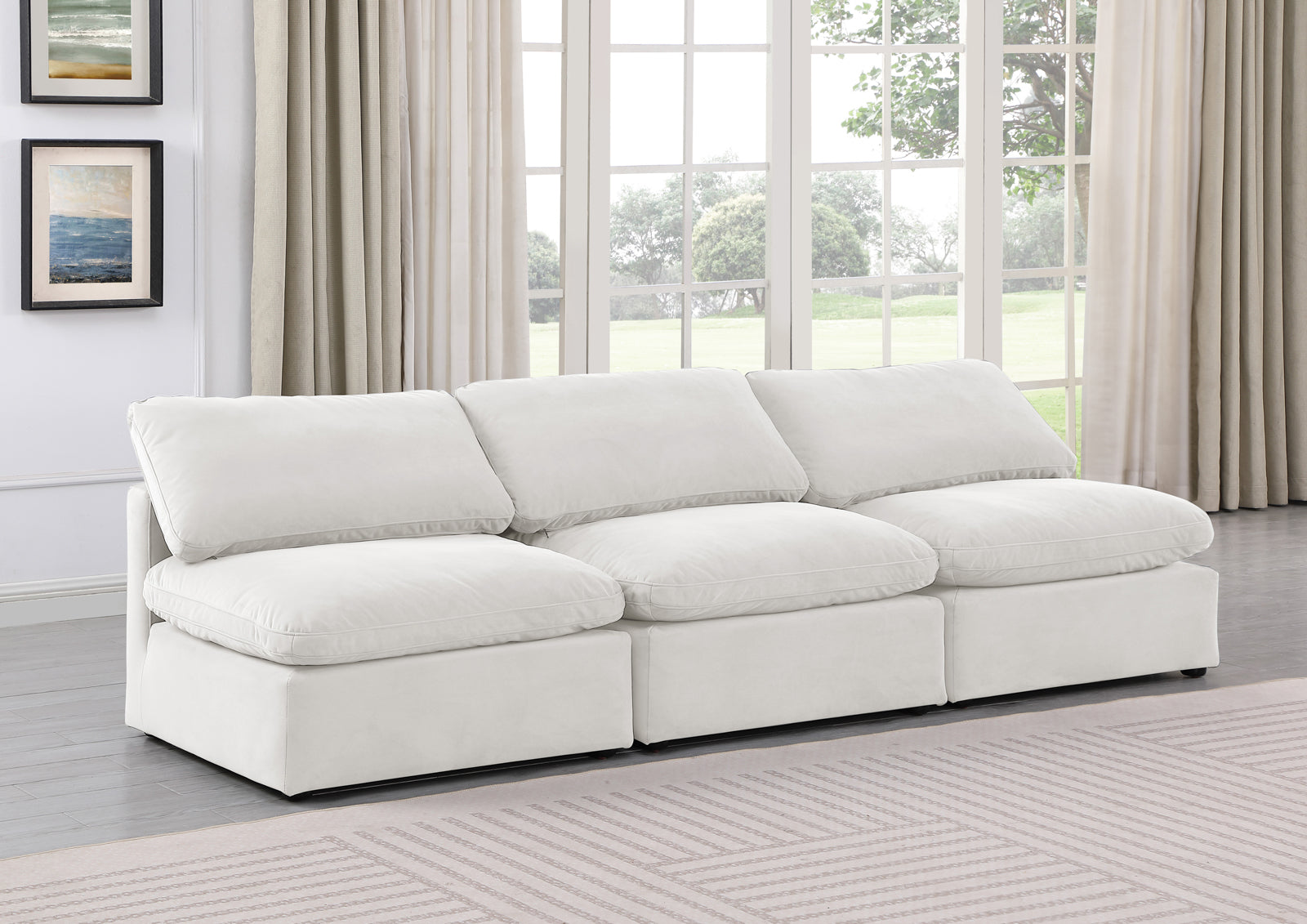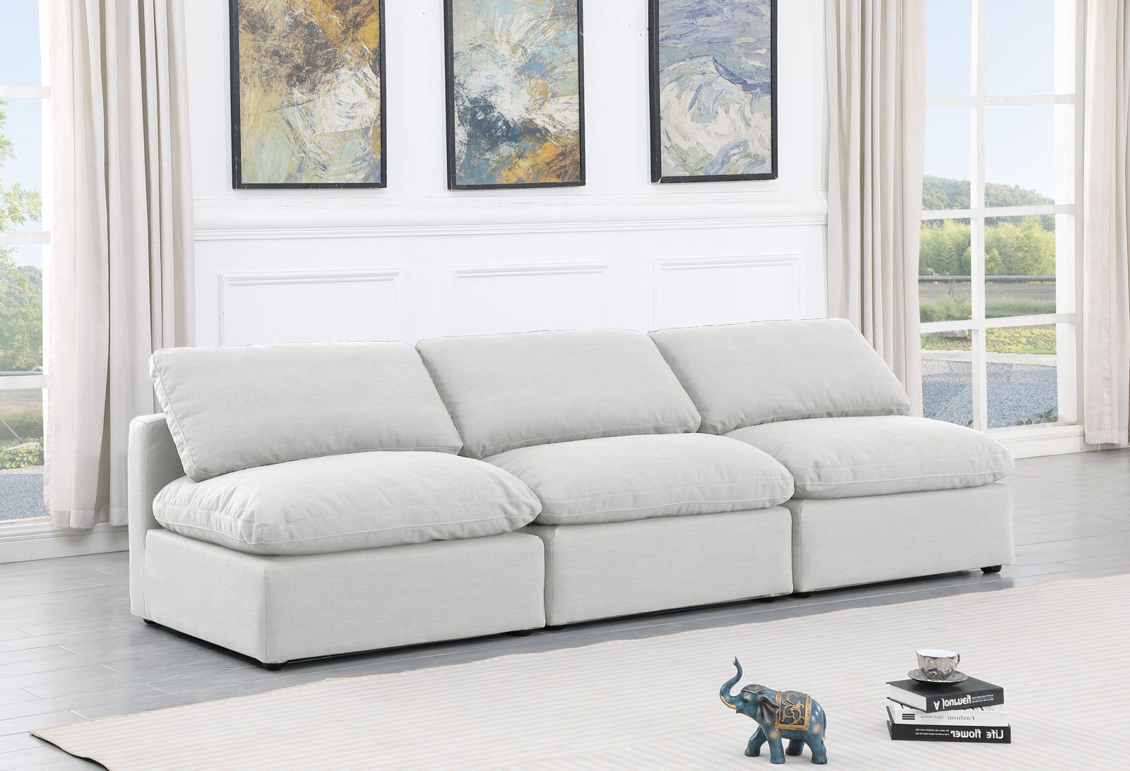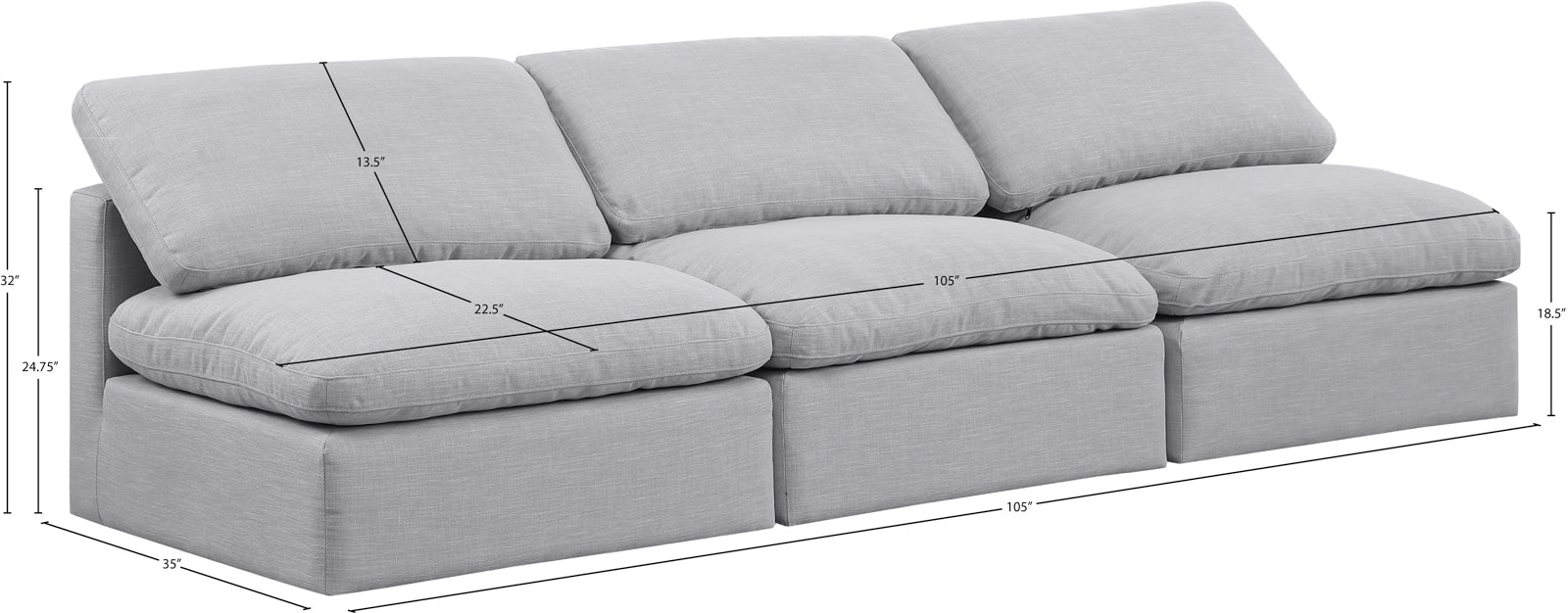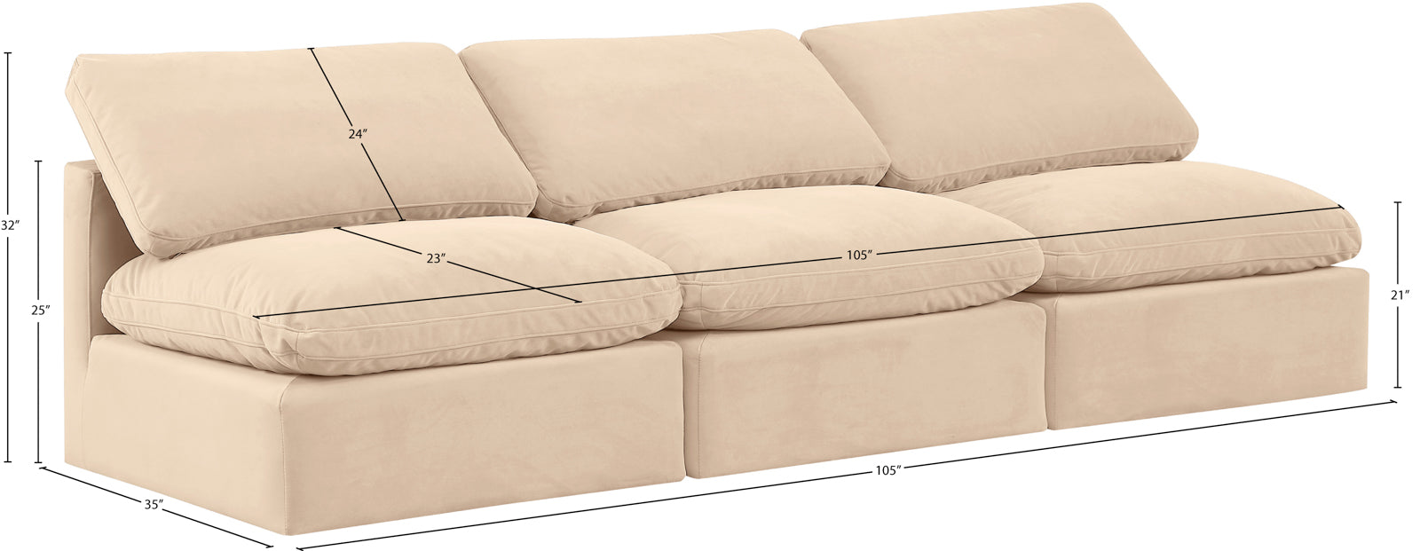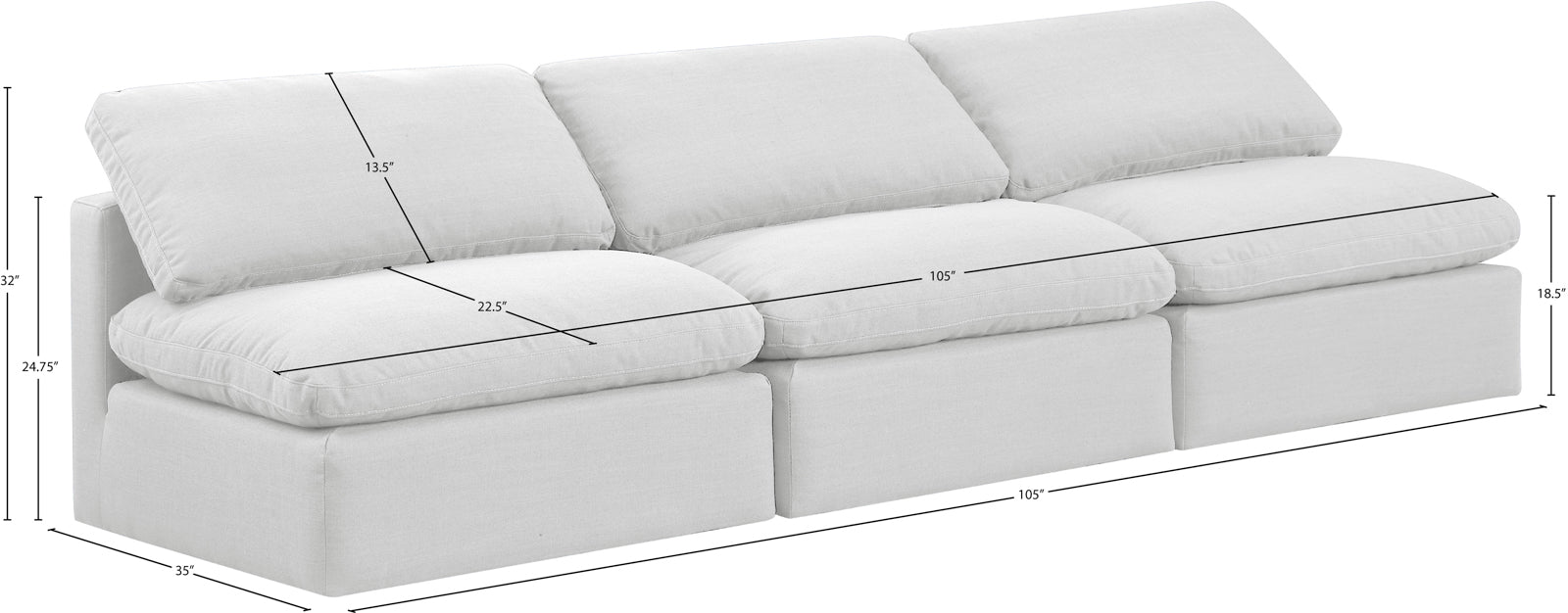 - Dimensions: 141Beige-S3 Indulge Beige Linen Textured Fabric Modular Sofa - 105" W x 35" D x 32" H