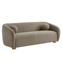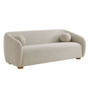 - 85" Curved Back Sofa OEKO-TEX® STANDARD 100 Certified Upholstery Plush Foam Padding and Spring Coil Support Ball Accent Pillows Included Wood Bun Feet Non-Marking Glides Assembly Required