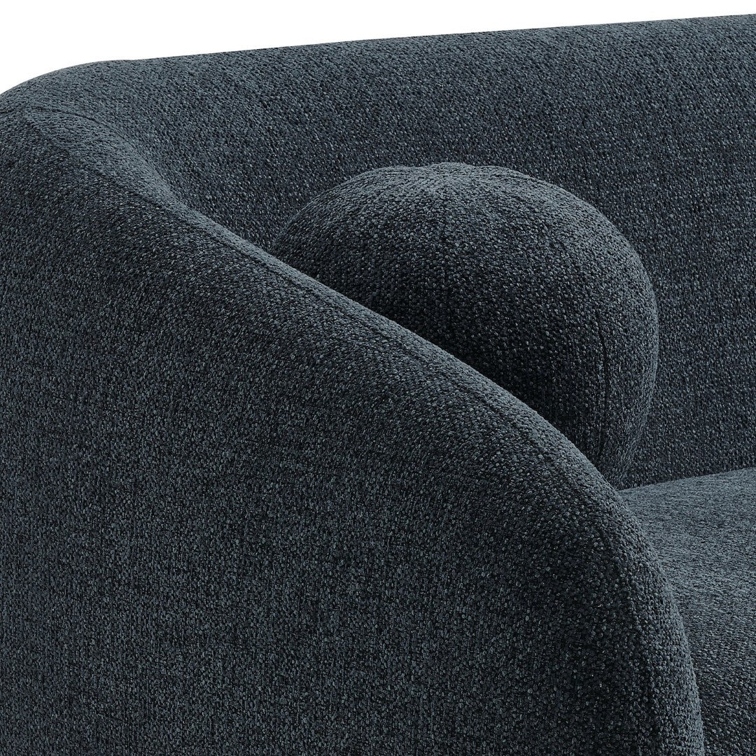 Transform your living space with the Holland curved swivel sofa — a refined blend of modern design and cloud-like comfort. Upholstered in a textured chenille-like fabric with boucle-inspired depth and OEKO-TEX® STANDARD 100 Certified materials, this sofa delivers a sophisticated, cozy presence while meeting responsible textile standards. The elegant curved silhouette, sloping armrests, and soft rounded edges create a contemporary focal point, and generous foam padding with spring coil support plus a smooth swivel base ensure plush seating and effortless mobility. Arrives fully assembled with a matching accent pillow and durable wood base with non-marking floor glides.