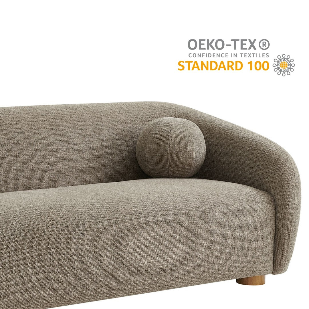 - Upholstery: Textured chenille-like, boucle-inspired fabric; OEKO-TEX® STANDARD 100 Certified