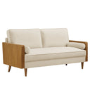 - Signature wood details: Wood-grain veneer armrests and tapered wood legs introduce natural warmth and mid-century character.
