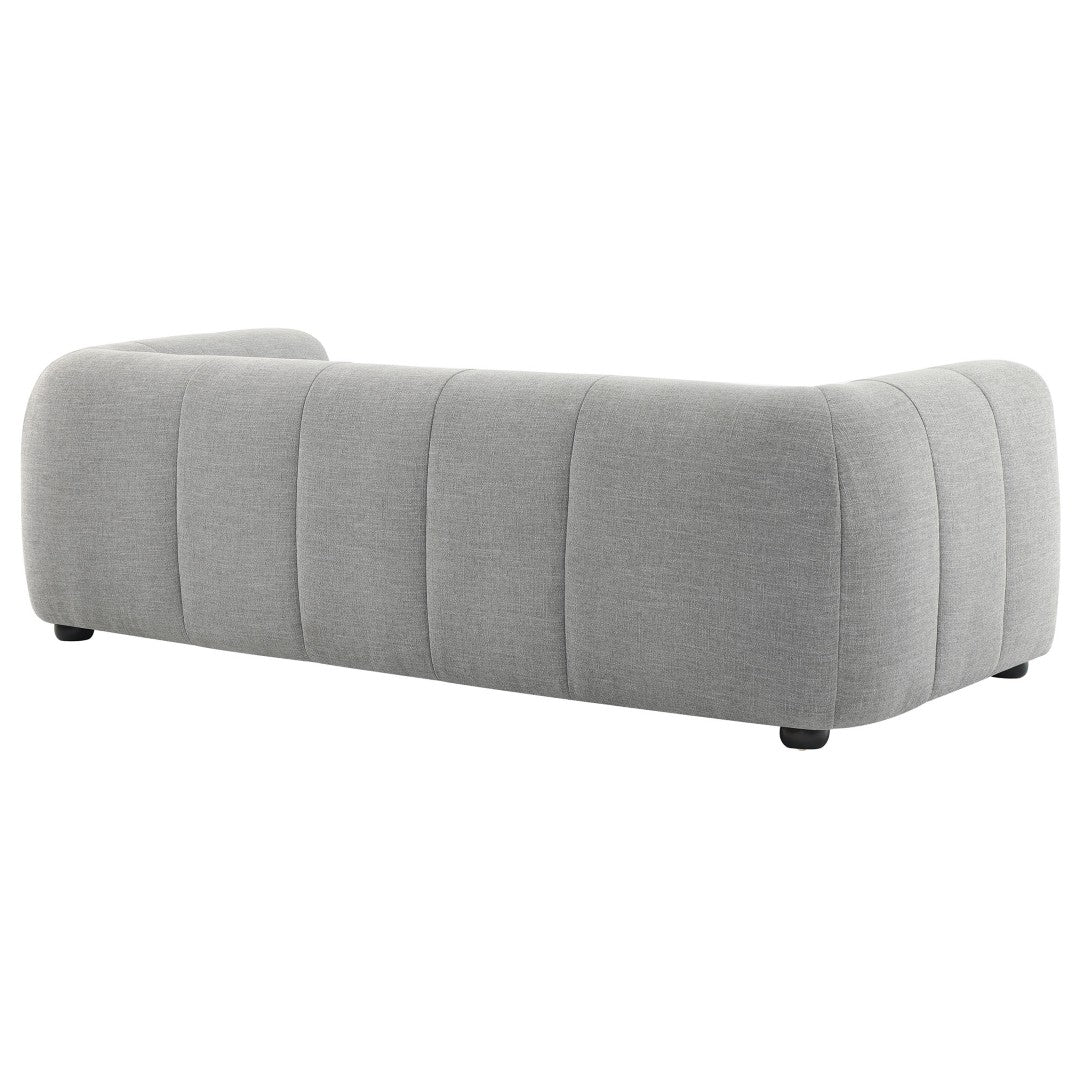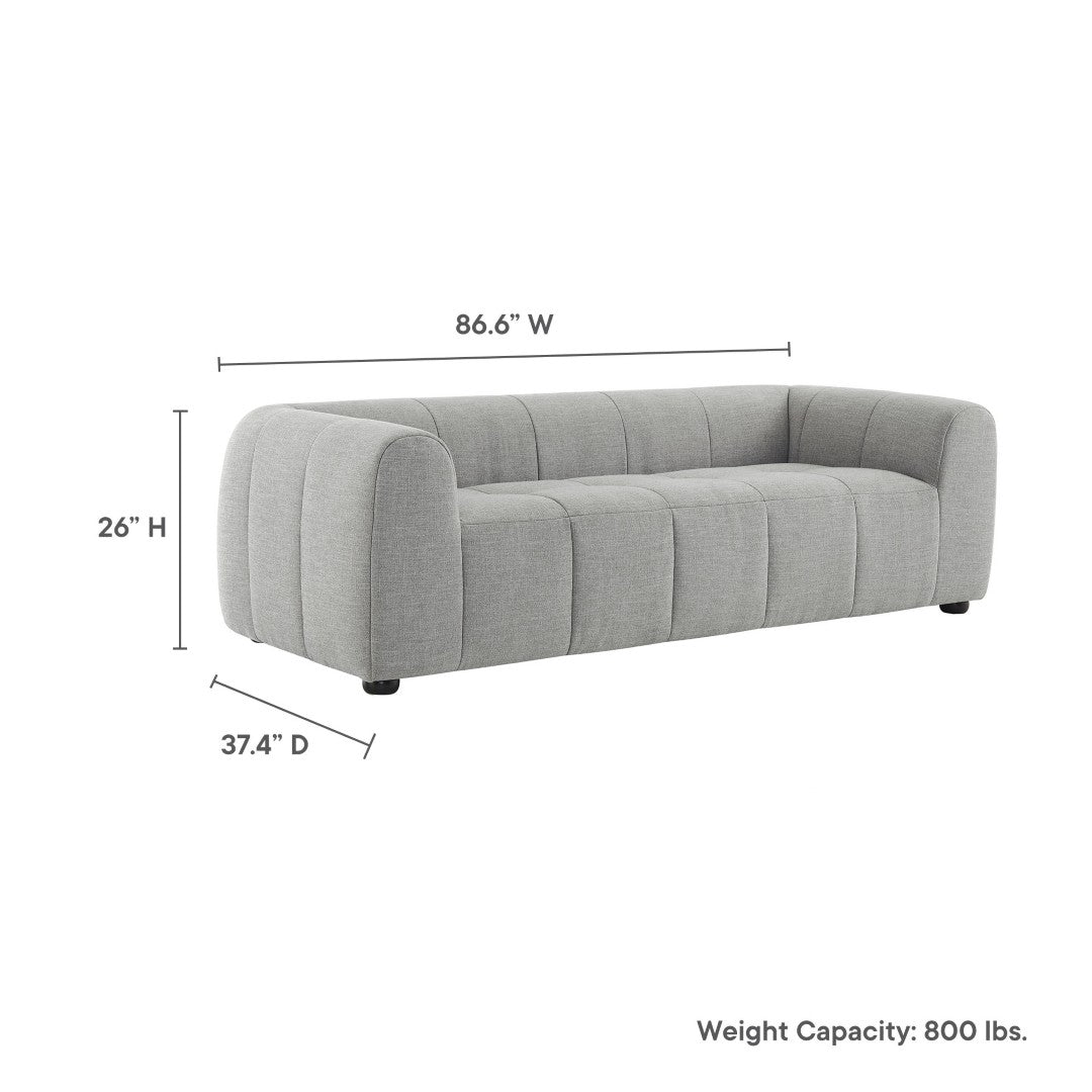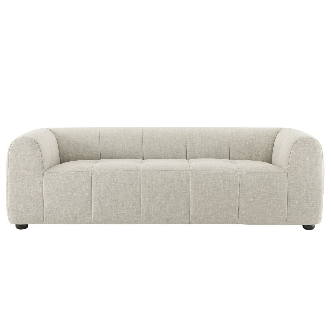 Sink into refined comfort with the Liana Upholstered Fabric Sofa — a retro-modern three-seater that balances chic design with everyday durability. Its low-profile silhouette, deep seating, and subtly tufted grid pattern create a relaxed yet polished look, while dense foam padding and solid construction deliver long-lasting support for family living or stylish entertaining.