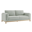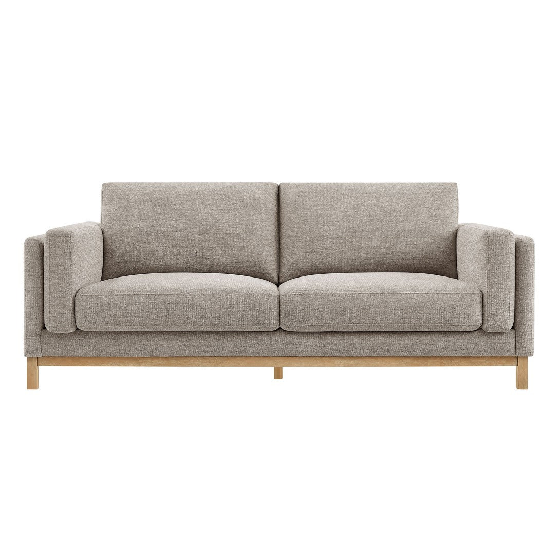 - Mélange Chenille Fabric Deep Seat Comfort with High Resiliency Foam Kiln-Dried Weathered Wood Frame Pocket Coil + Sinuous Springs Low Profile Silhouette Non-Marking Foot Caps Assembly Required