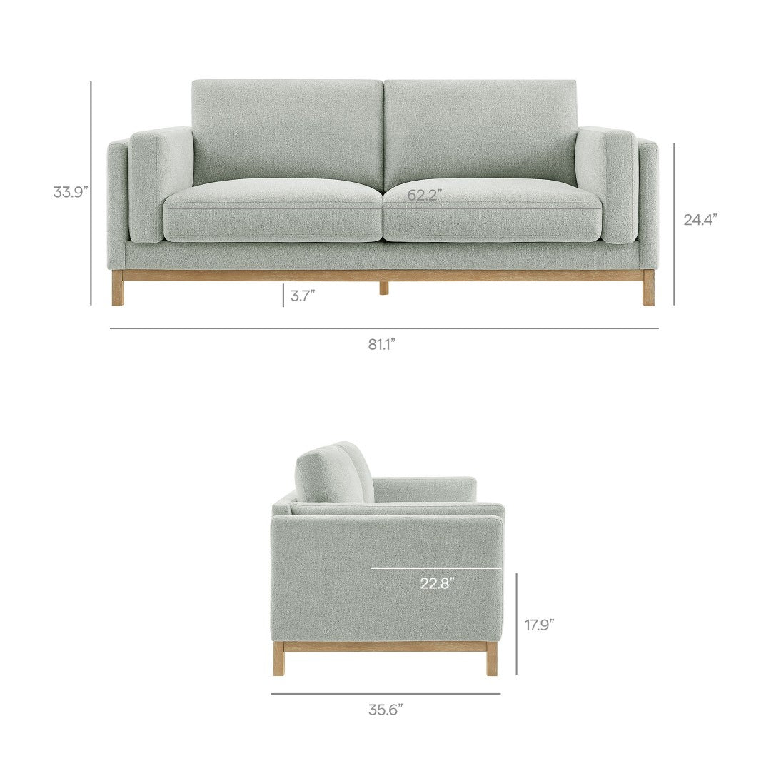 - Seating dimensions: Seat 22.8" L x 62.2" W x 17.9" H; Cushion thickness 7.1" H