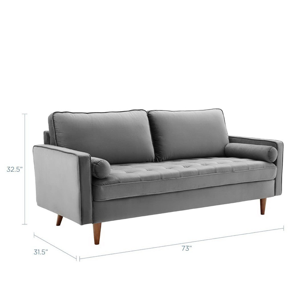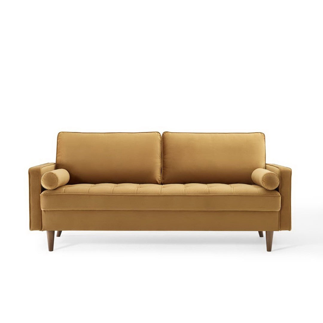Give your living space a refined mid-century update with the Valour Performance Velvet Sofa. Combining classic biscuit tufting and tapered walnut-stained legs with modern performance features, this sofa delivers both style and everyday durability. Soft, stain-resistant velvet upholstery and a well-engineered seating system create a comfortable, supportive spot for lounging, entertaining, or cozying up with a book.