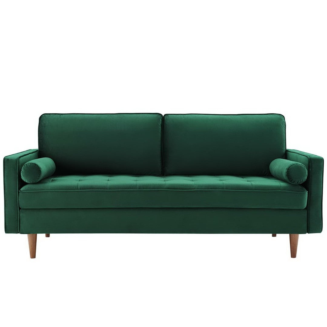 - Mid-Century Modern Sofa Performance Velvet Polyester Upholstery Durable Stain-Resistant Fabric Innerspring Pocket Structure Dense Foam Padding Ships in a Convenient Box Sofa Weight Capacity: 881 lbs.
