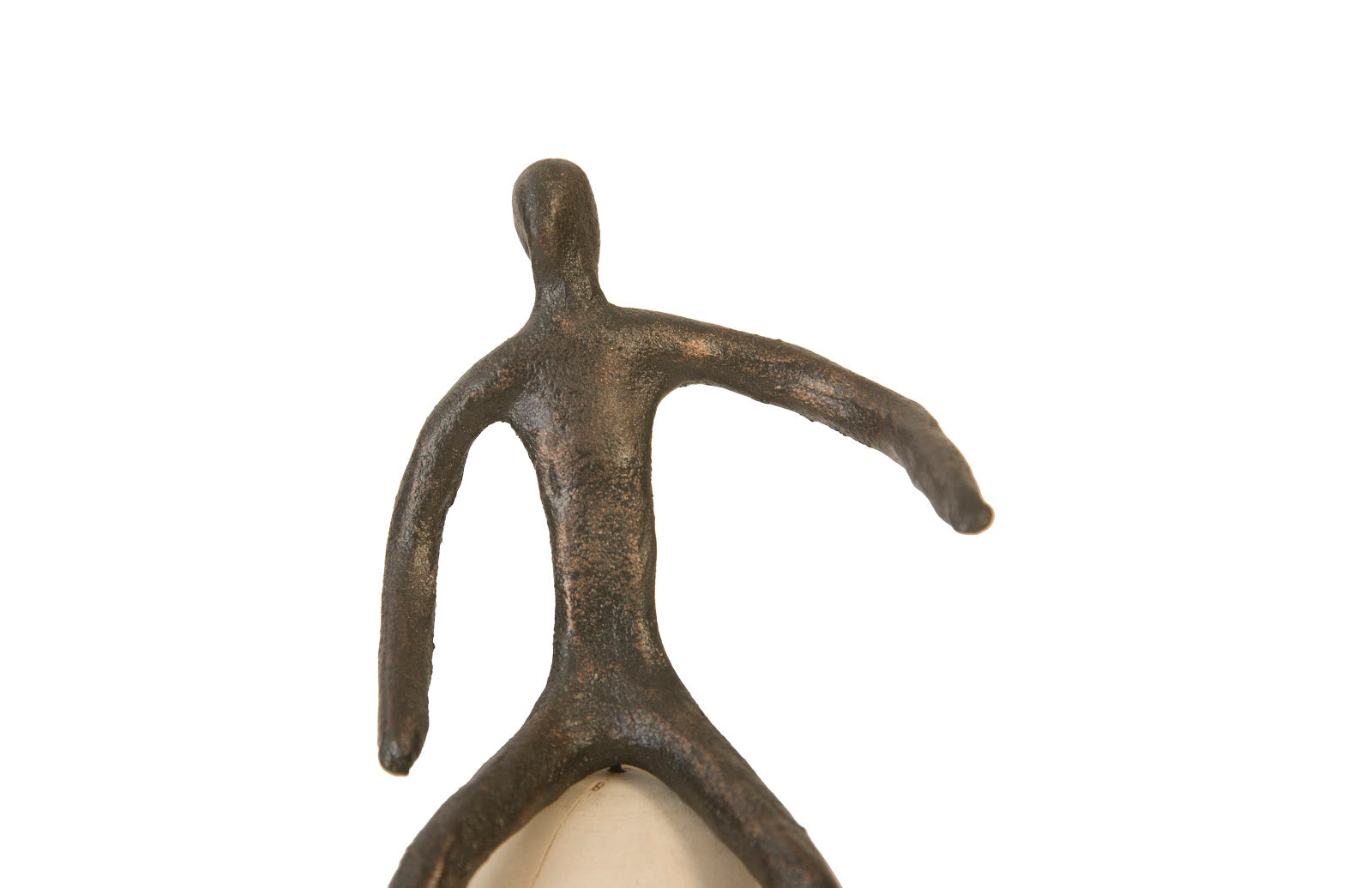 The Pointing Seated Figure will fast become one of your favorite playful decorative accessories. Made of metal in a bronze finish, the pointing figure sits on a ball of wood that has been bleached to make this decorative sculpture a study in contrasts. The aged patina on the surface of the sculpture may fool the eye into thinking this is a vintage tabletop piece but it’s brand new, and is a testament to our skilled finish artisans. Wherever you place this whimsical sculpture, it will be a conversation starter, whether it is placed alone or in tandem with the other figures in this series, which also include a waving figure and a reaching figure. Each of these reflects the ethos that Phillips Collection personifies: modern organic.