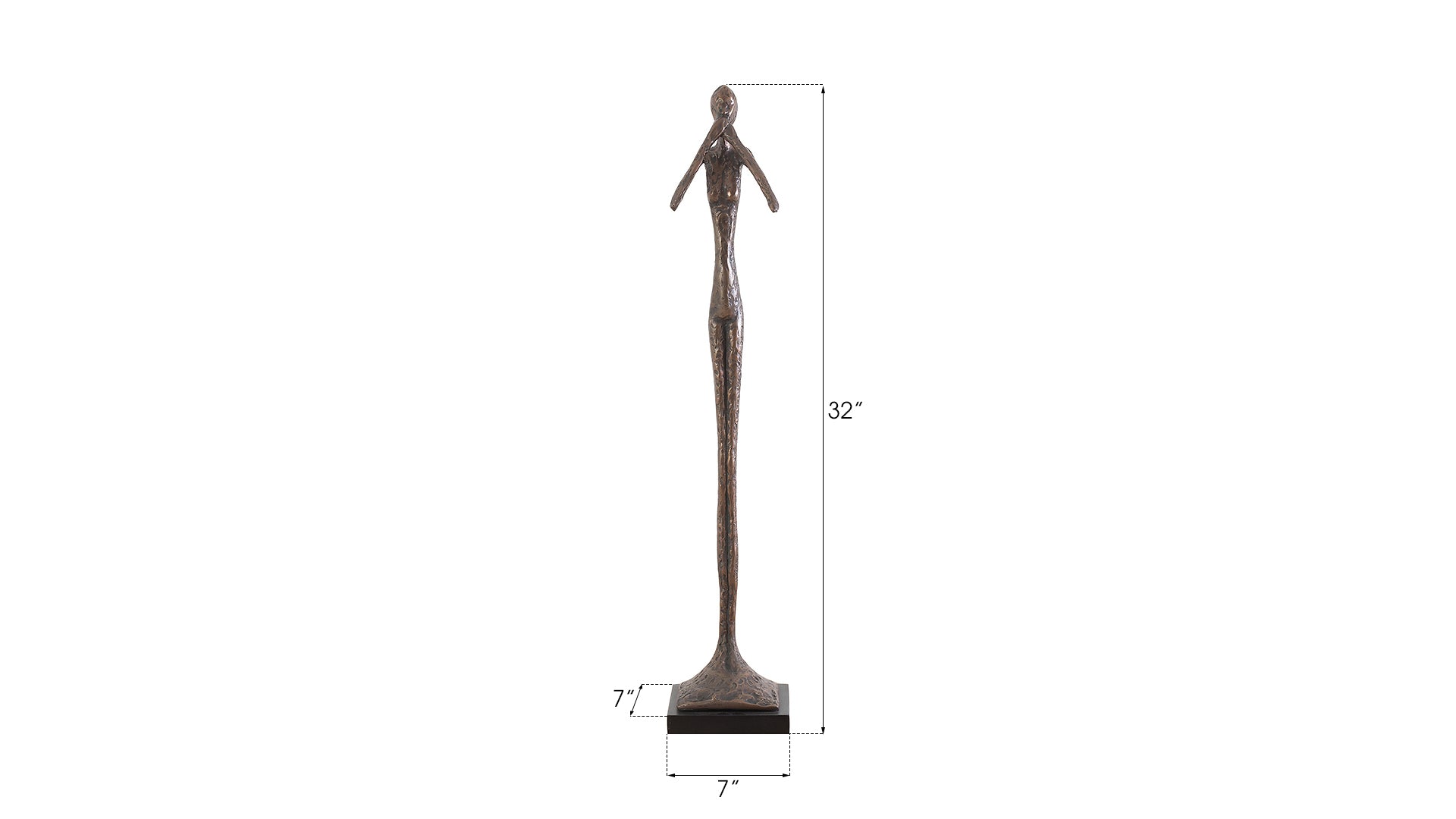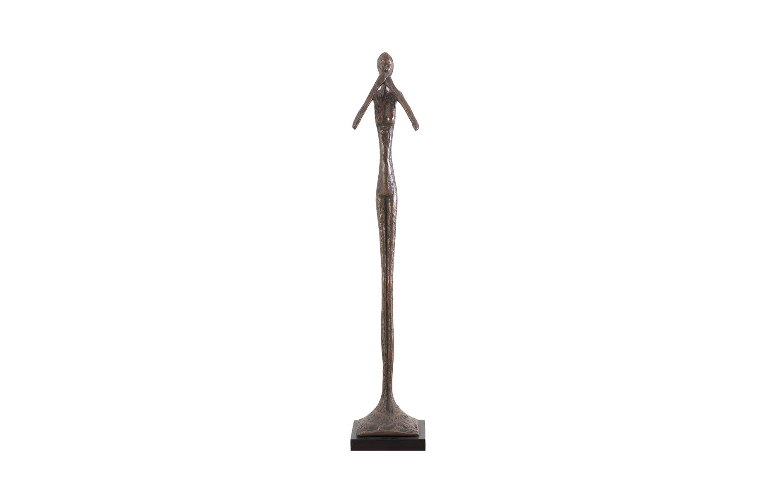 Thin is in, as the saying goes, which means the Speak No Evil Small Skinny Bronze Sculpture will be a remarkably popular decorative accessory in any décor style. Designer Raymond Waites has created this family of decorative sculptures, one of our most popular collections. This pared-down sculpture is cast in composite and finished with actual bronze powder to make it feel like metal. We also offer the bronze sculpture in a larger size and in several different sizes in a silver finish. Each of these reflects the ethos that Phillips Collection personifies: modern organic.