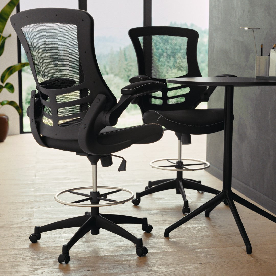 - Contemporary Adjustable Height Drafting Stool with Flip-Up Arms